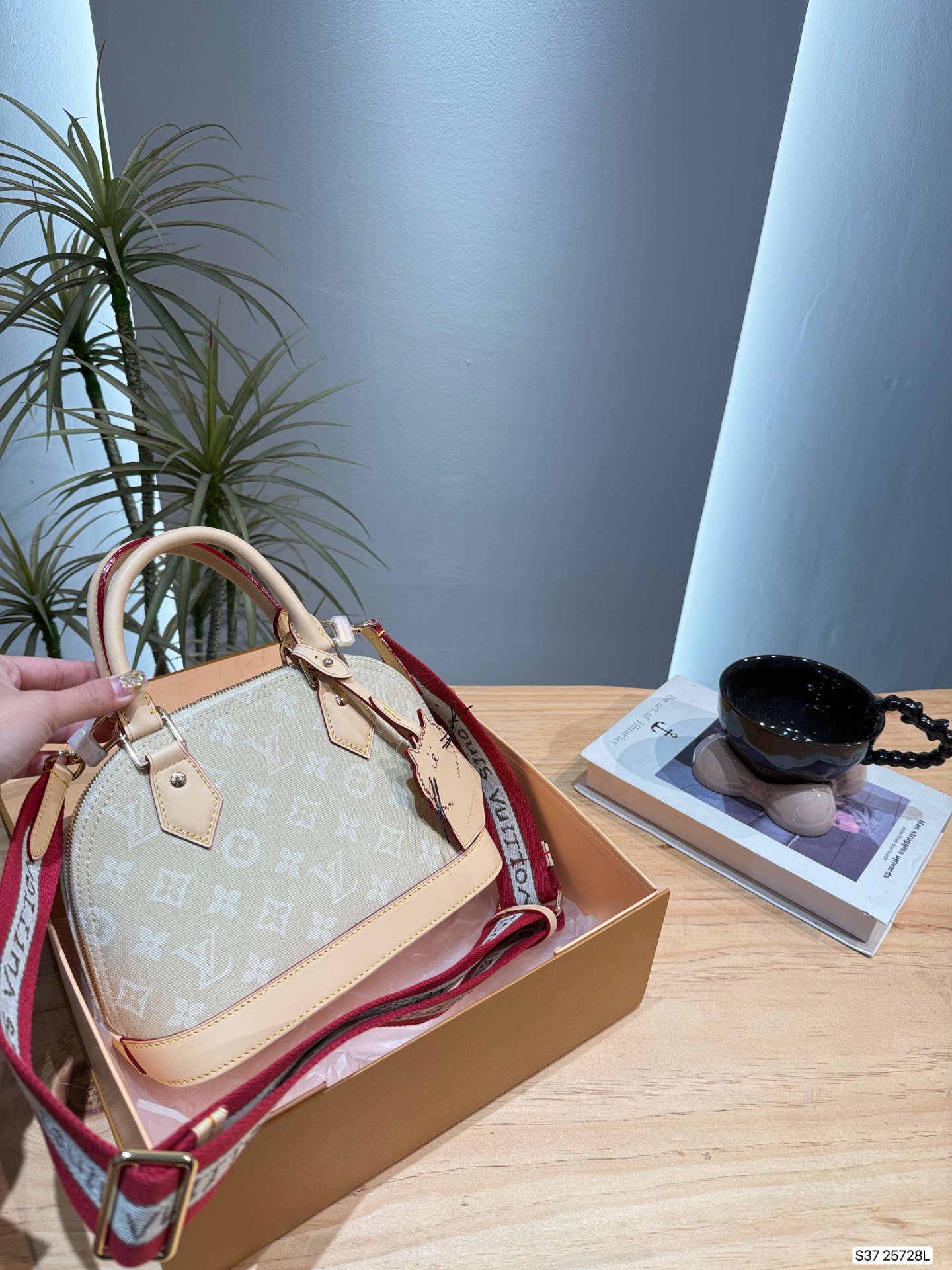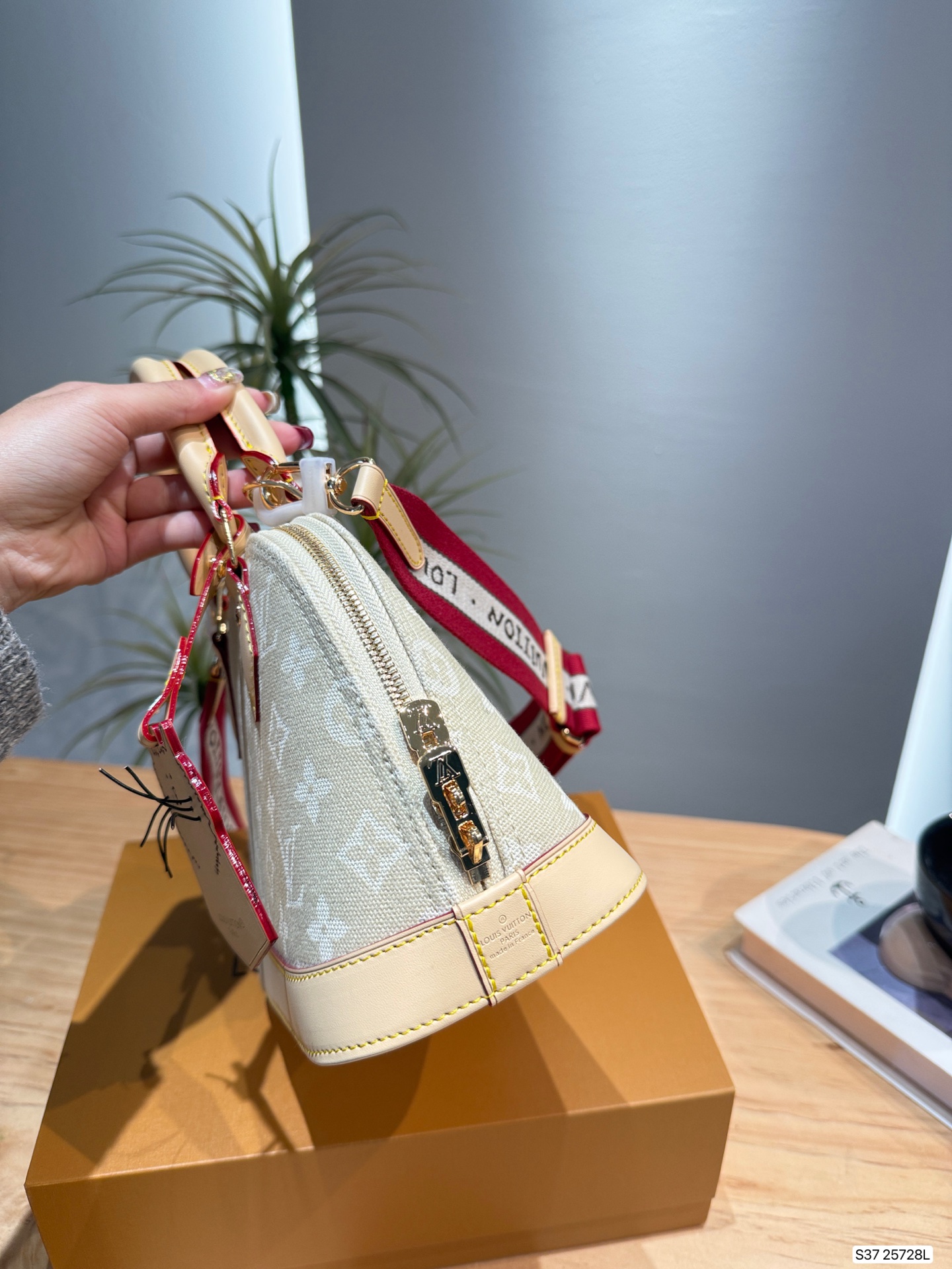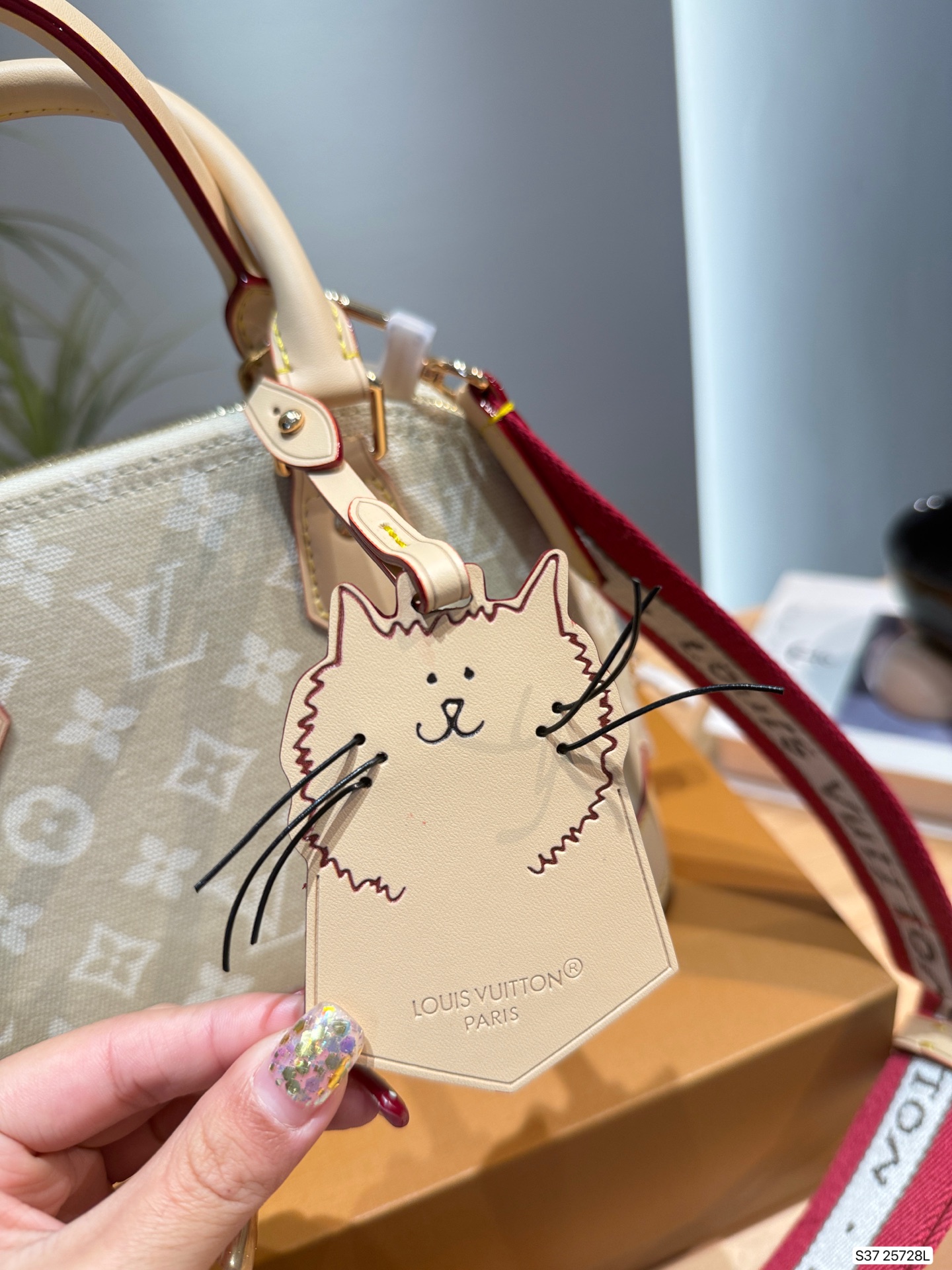 The LV Travels With Grace Coddington collection showcases this exclusive edition of the Alma BB, patterned with the playful Meowgram signature. It is crafted from canvas with cowhide trims and has a contrasting textile strap, which features the Louis Vuitton wordmark in Coddington’s handwriting. The charming design also includes a padlock and keybell, symbolizing the House’s savoir-faire and quality craftsmanship.
