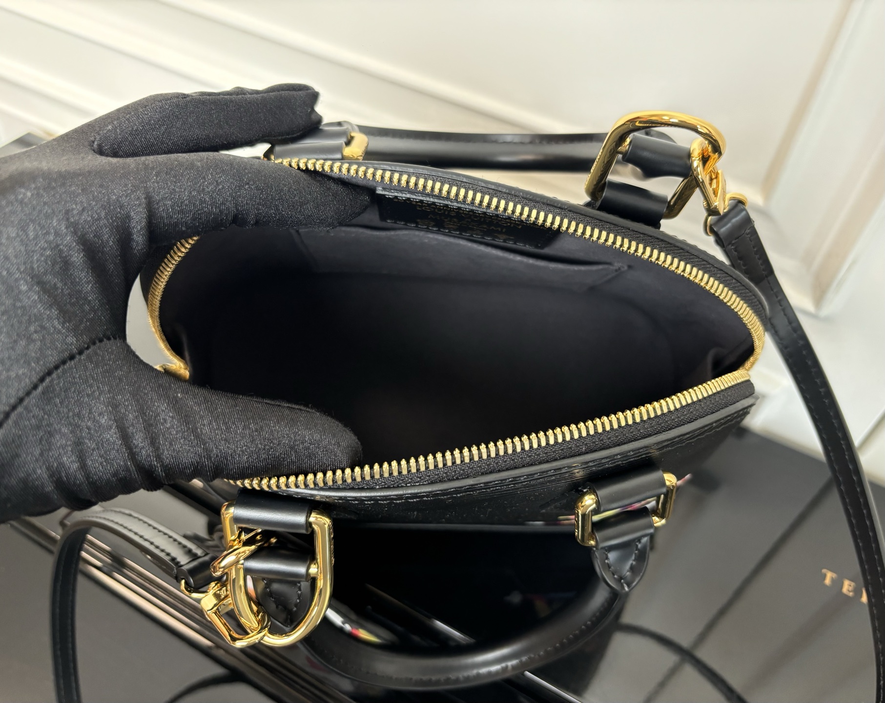 Statement signatures from the re-edition of the Louis Vuitton x Murakami collection refresh the iconic Alma BB handbag with a spirited twist. Crafted from Epi leather, the front is embellished with a playful reimagining of the LV Initials in the Japanese artist’s vernacular superflat style, which is complemented by a removable Panda charm in bold tones. The elegant Art Deco-inspired design is complete with two top handles, a removable strap and a golden padlock detail.