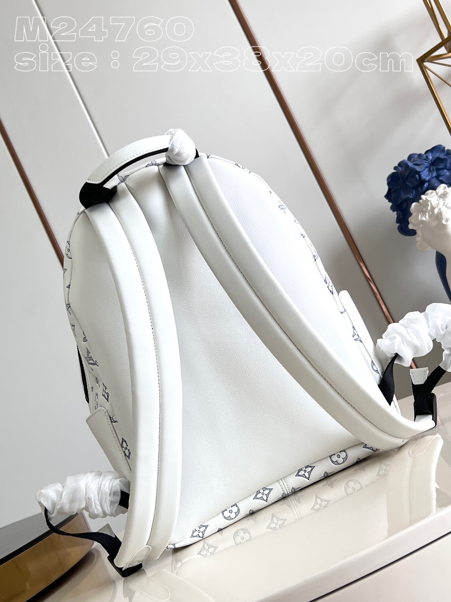 [Exclusive Real Photos M24760 White] This Discovery backpack is crafted from Monogram Shadow leather, featuring embossed and printed LV letters and Monogram flowers. Its spacious front pocket, open side pockets, and interior slip pockets make it an excellent choice for daily use. Dimensions: 29 x 38 x 20 cm (L x H x W).