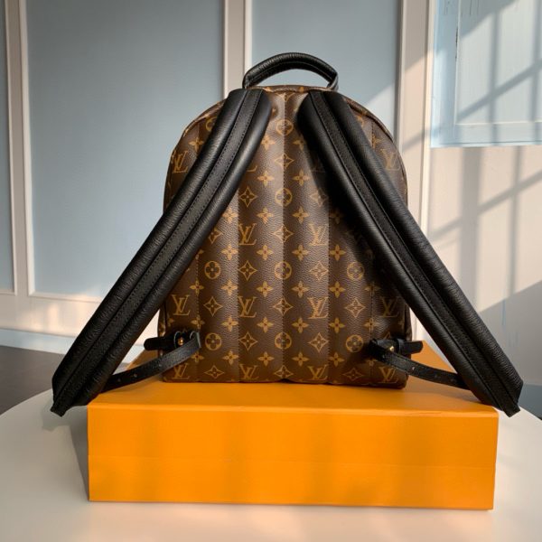 The Palm Springs MM backpack gives a fresh twist to a utilitarian staple, transforming it into an on-trend city bag. A chic and practical accessory for sporty urban nomads, this generously sized model is fashioned from iconic Monogram canvas with soft leather trim and gold-tone hardware. The quilted straps are foam-backed for a comfortable carry.