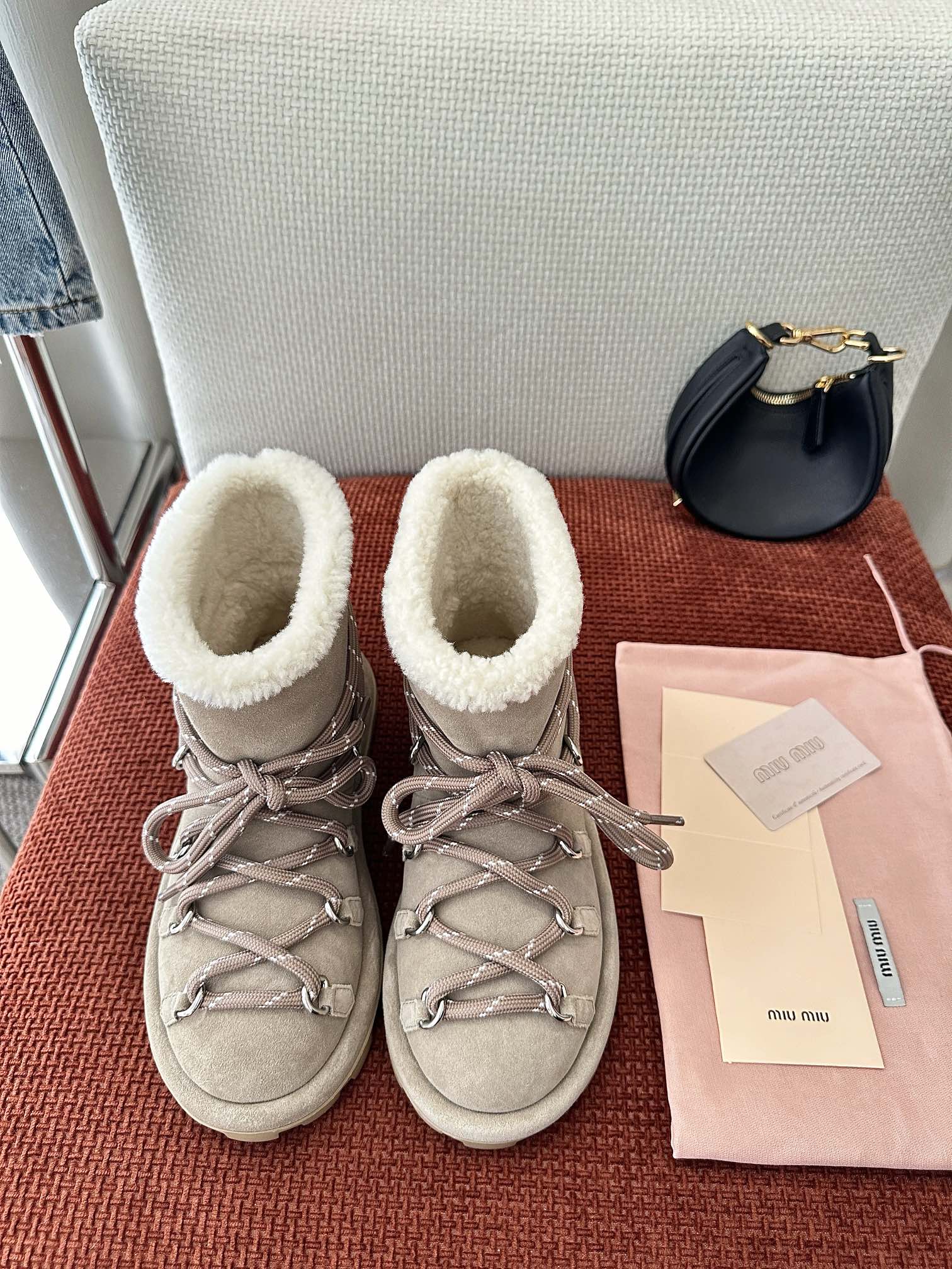 🍓 MIU MIU 24 New Lace-Up Wool Snow Boots