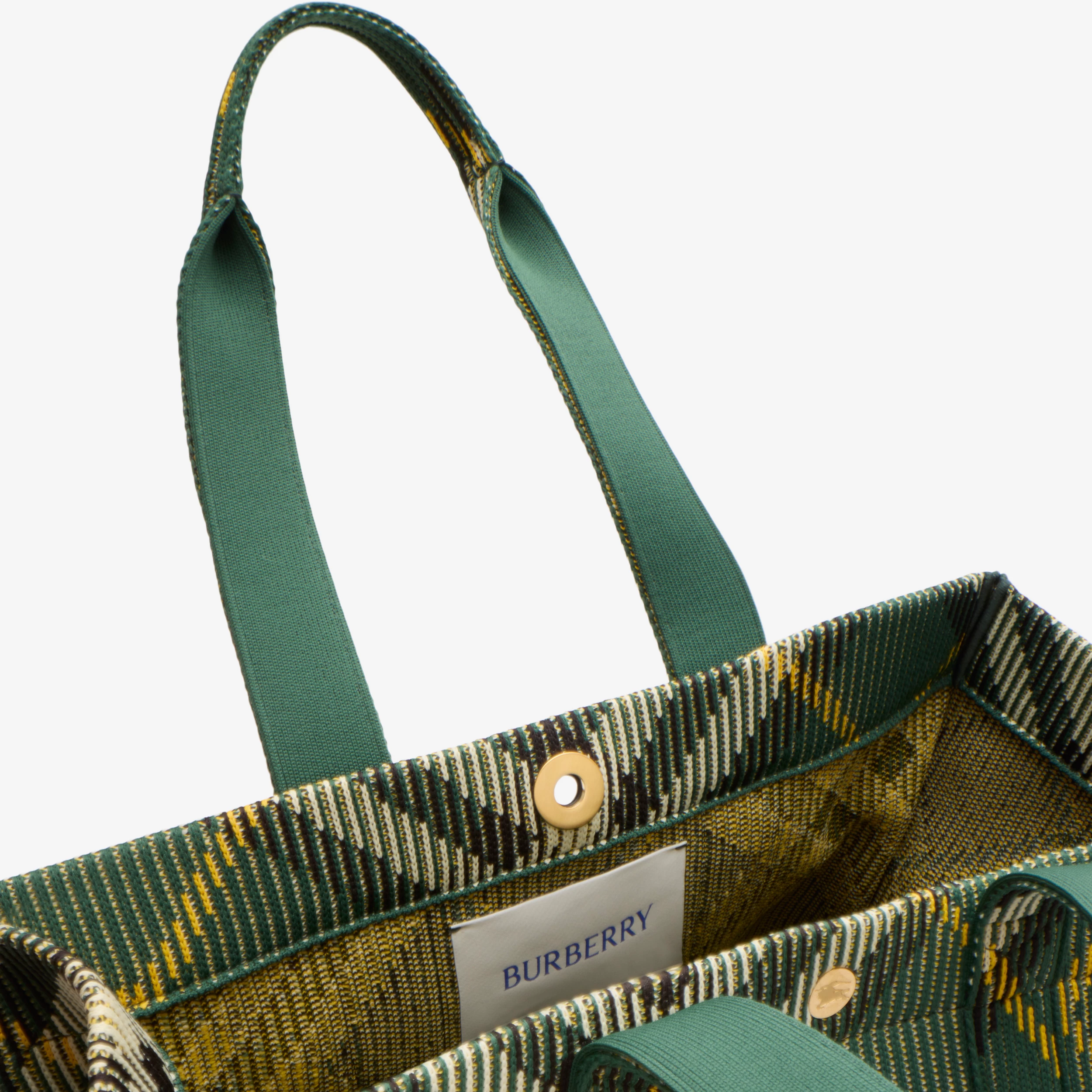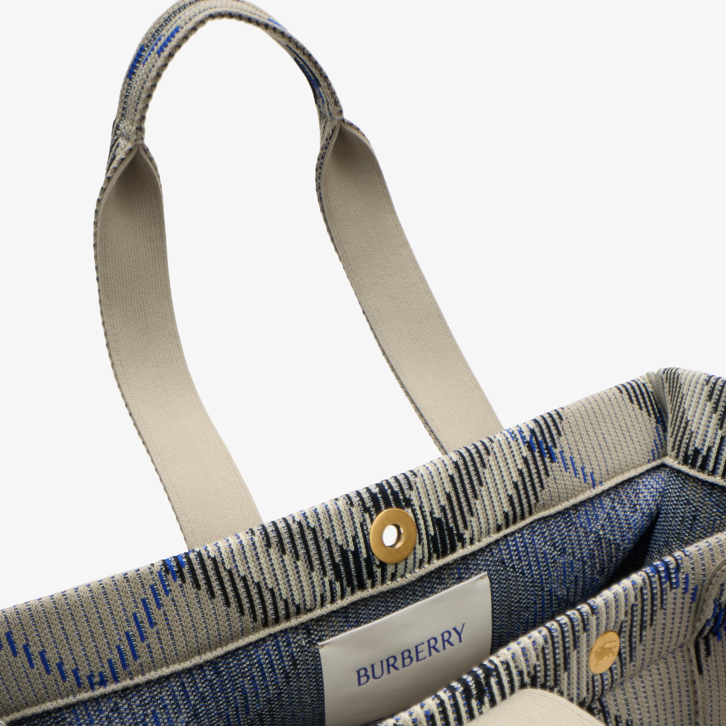 - A softly structured tote knitted in Italy with the Burberry Check. The lightweight bag is unlined and finished with a press stud engraved with the Equestrian Knight Design.