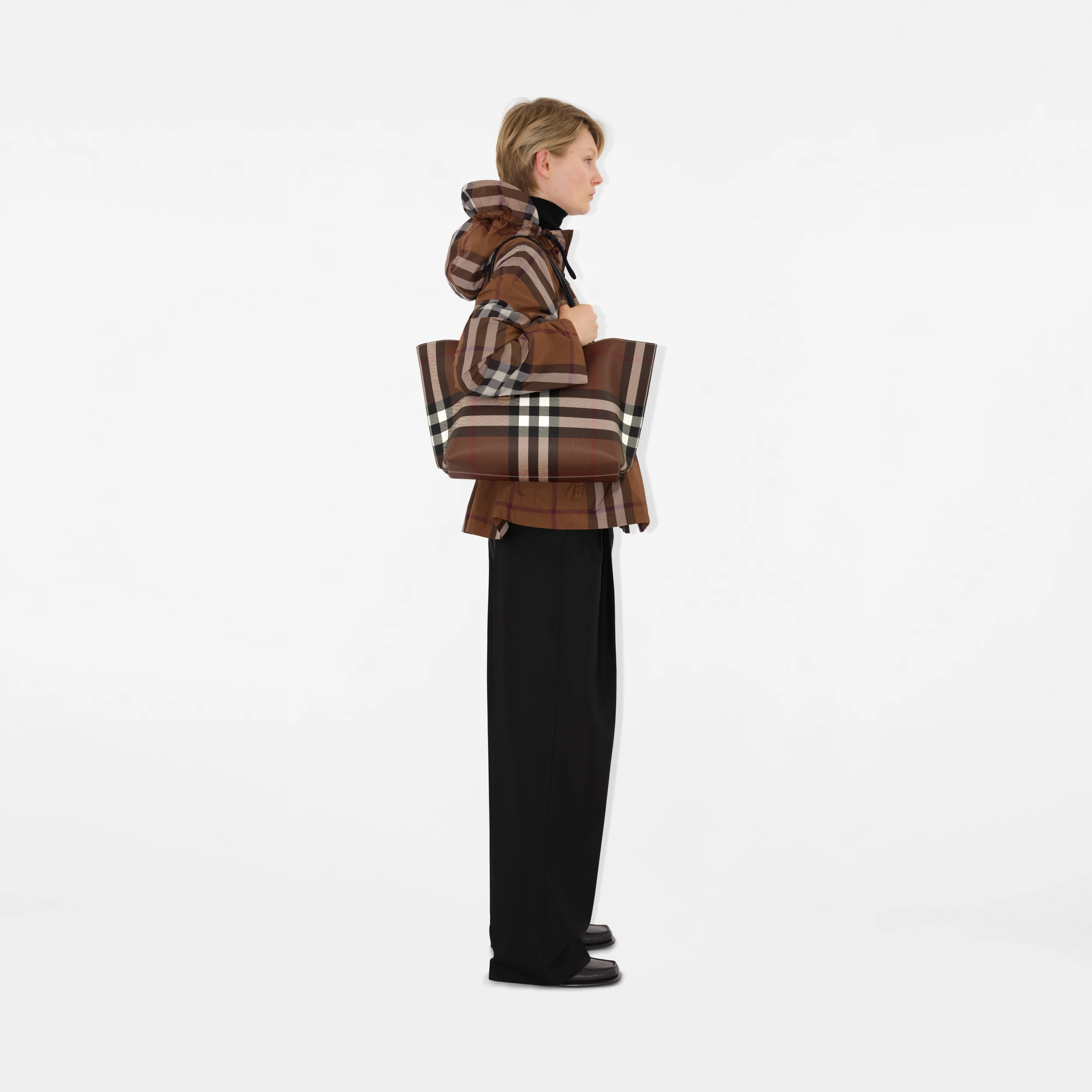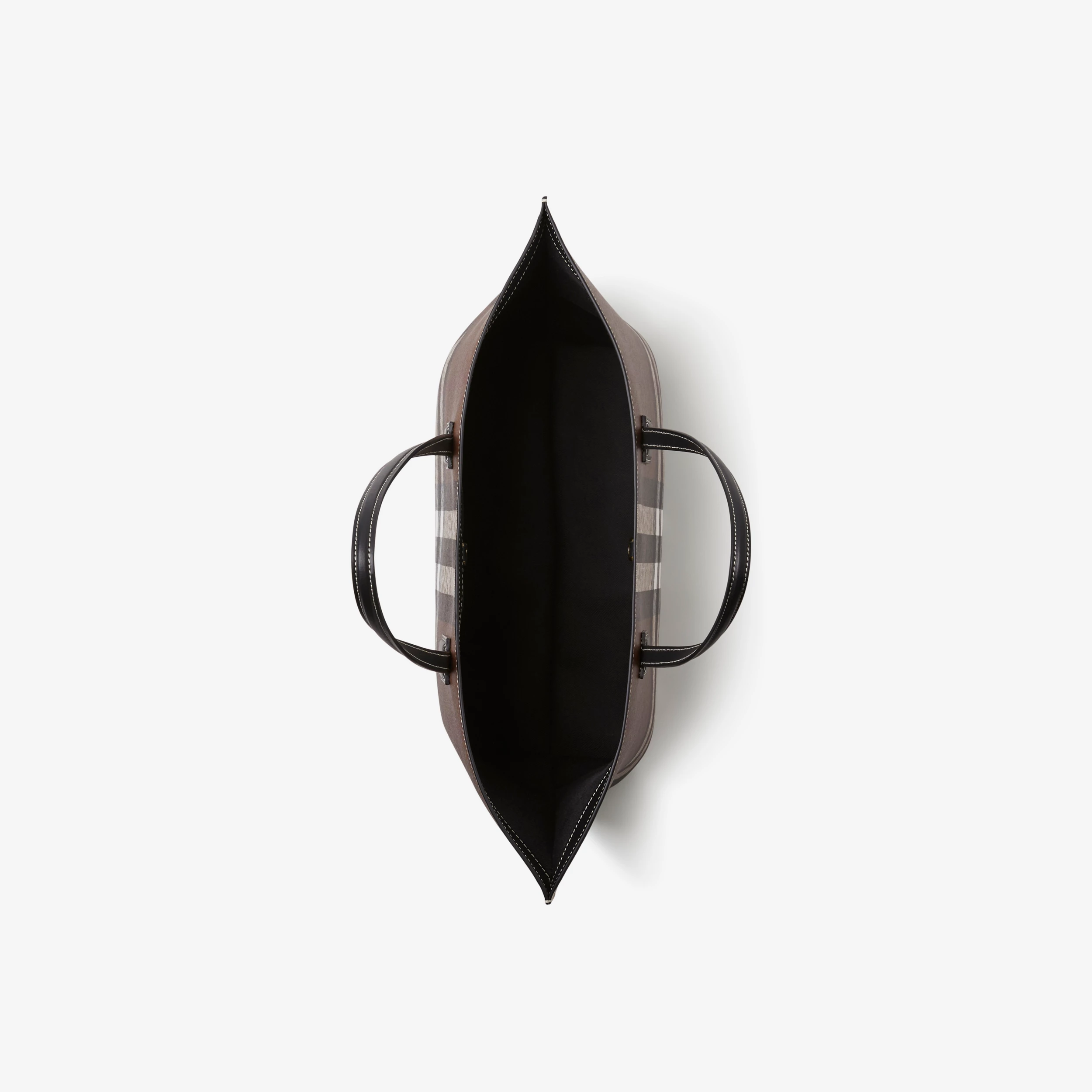 - A softly structured tote made in Italy from Burberry Check and smooth calf leather, lined in a cotton blend. The design features slim top handles and a leather-wrapped mirror charm.