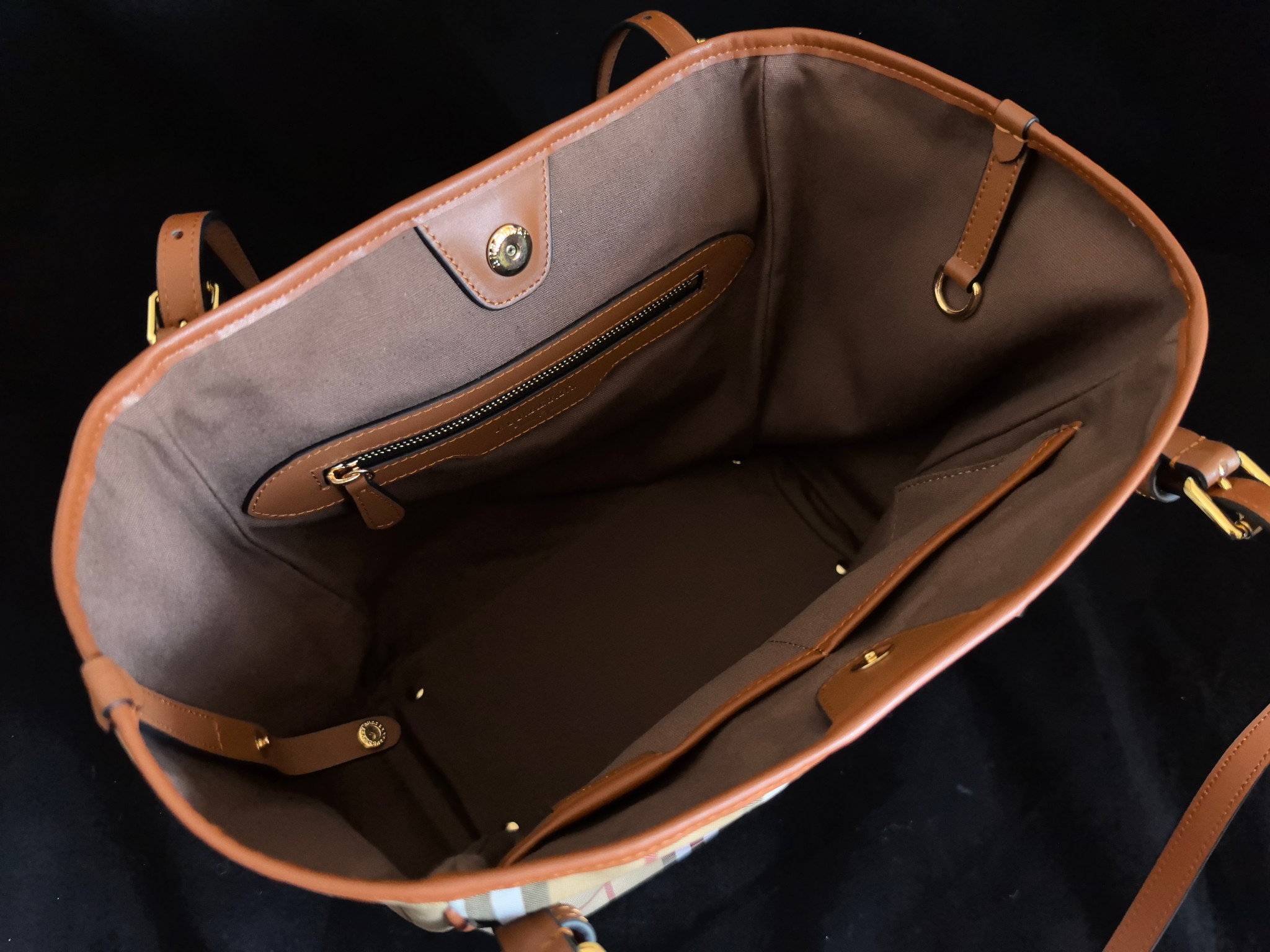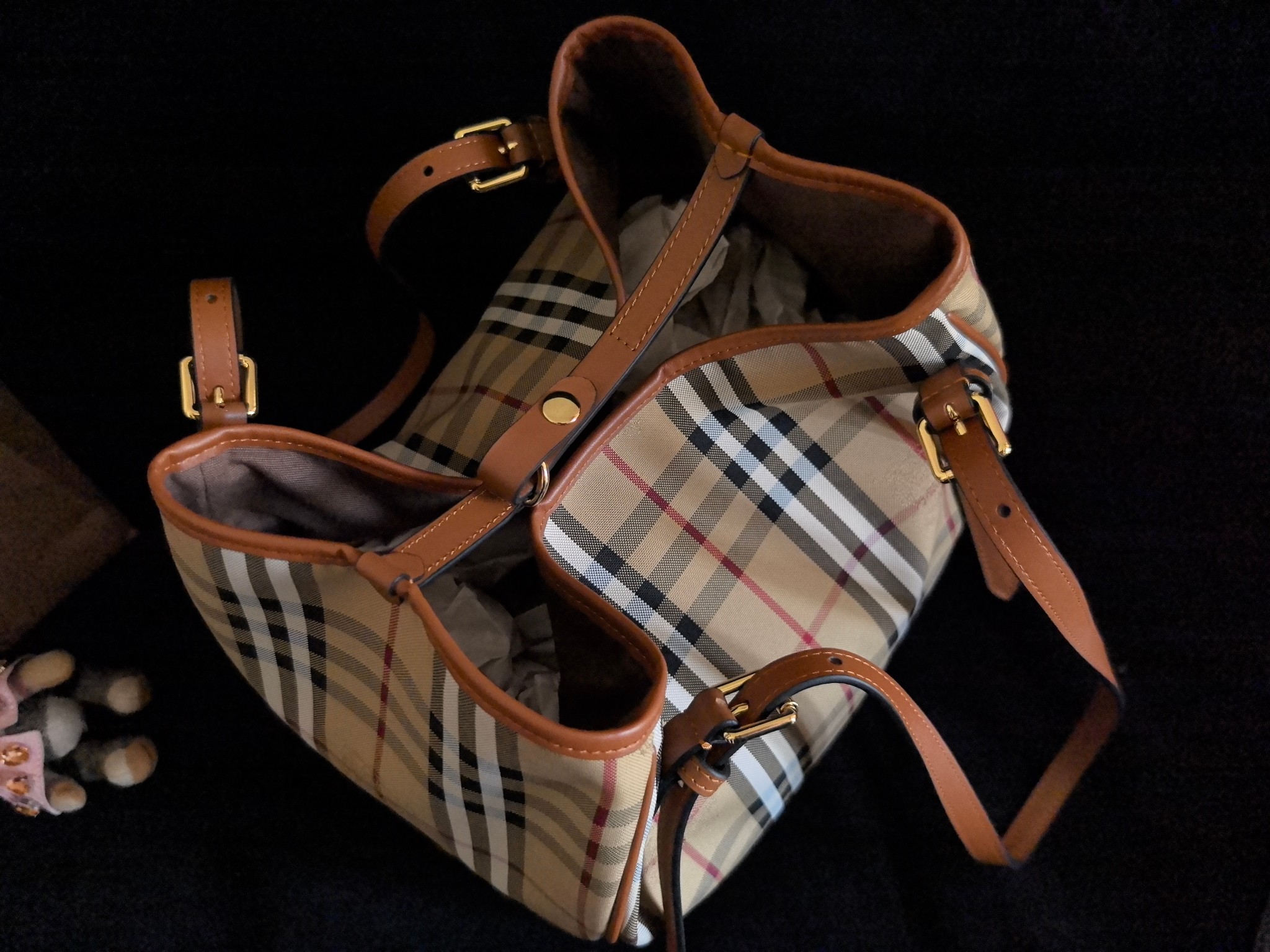 Classic Made from imported cotton, each one must be checked strictly.haymarket check burberry plaid tote bag, decorated with luxurious leather, open mouth with drawstring tie and magnetic buckle, leather strap design, polished hardware Accessories Size W25.5*H29*D10cm.