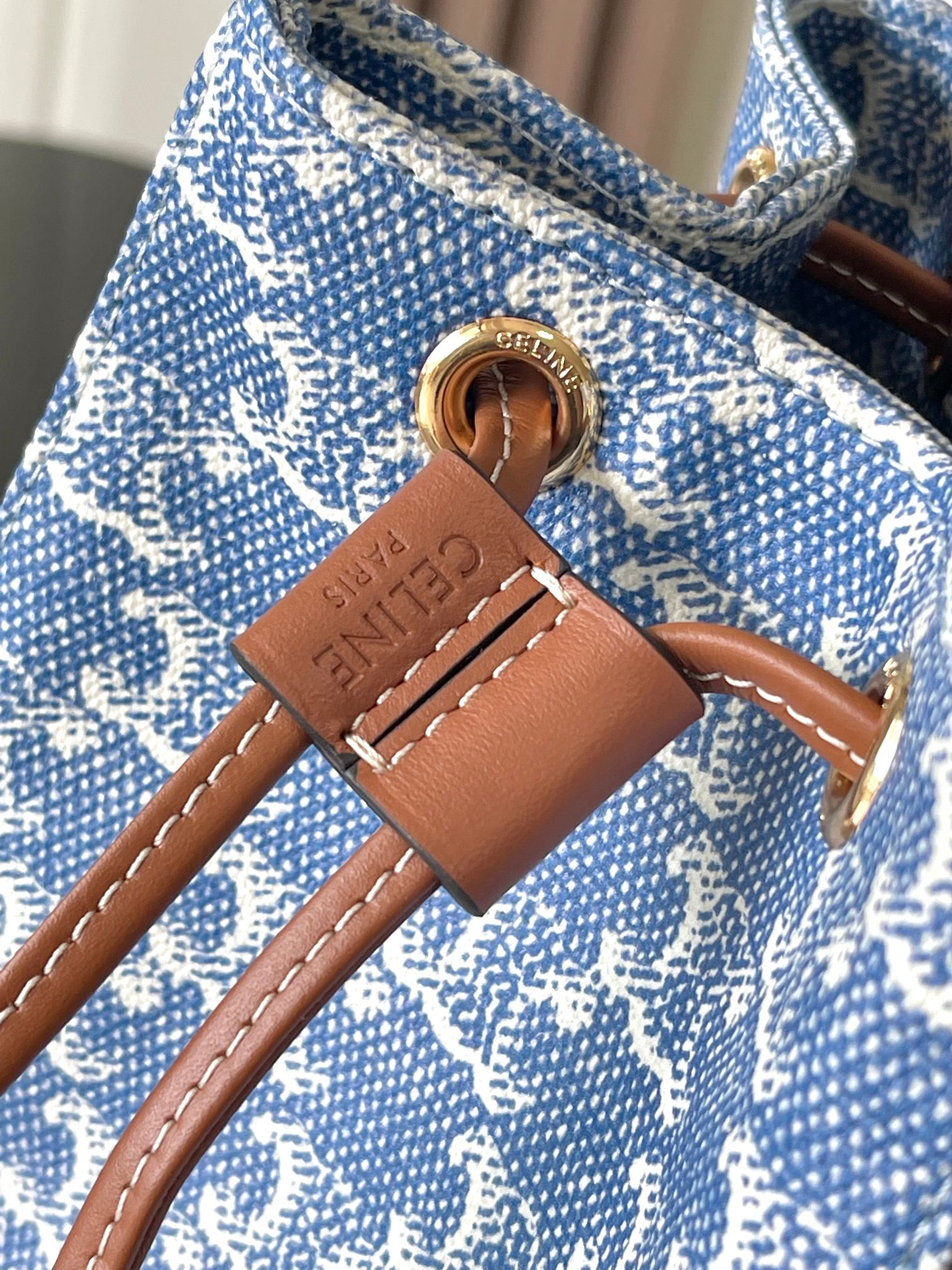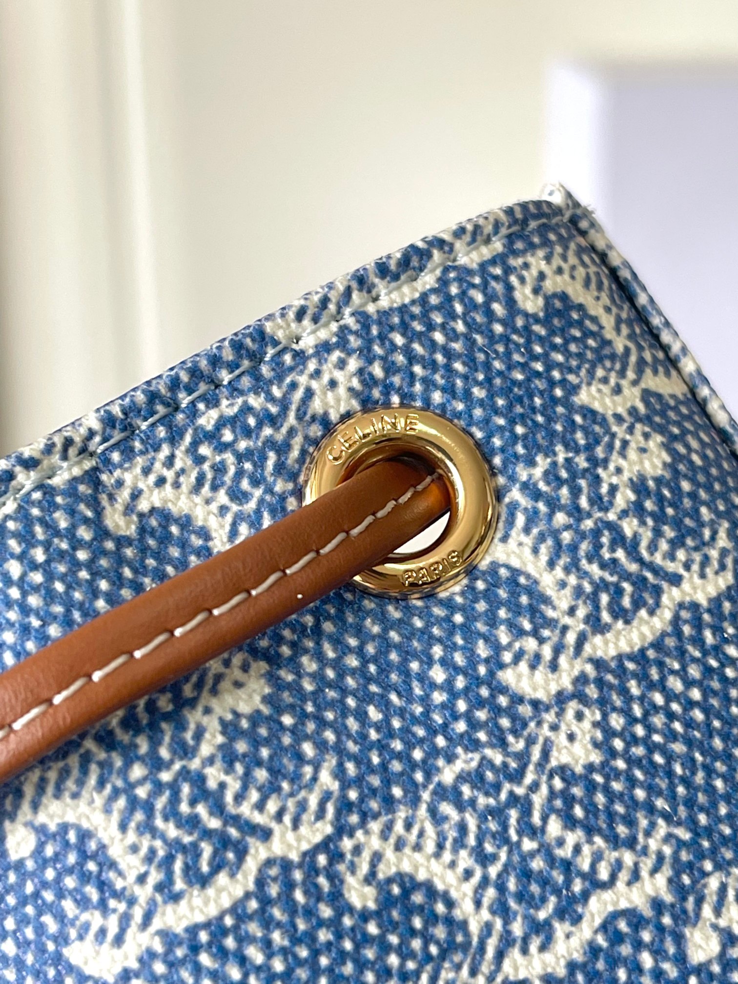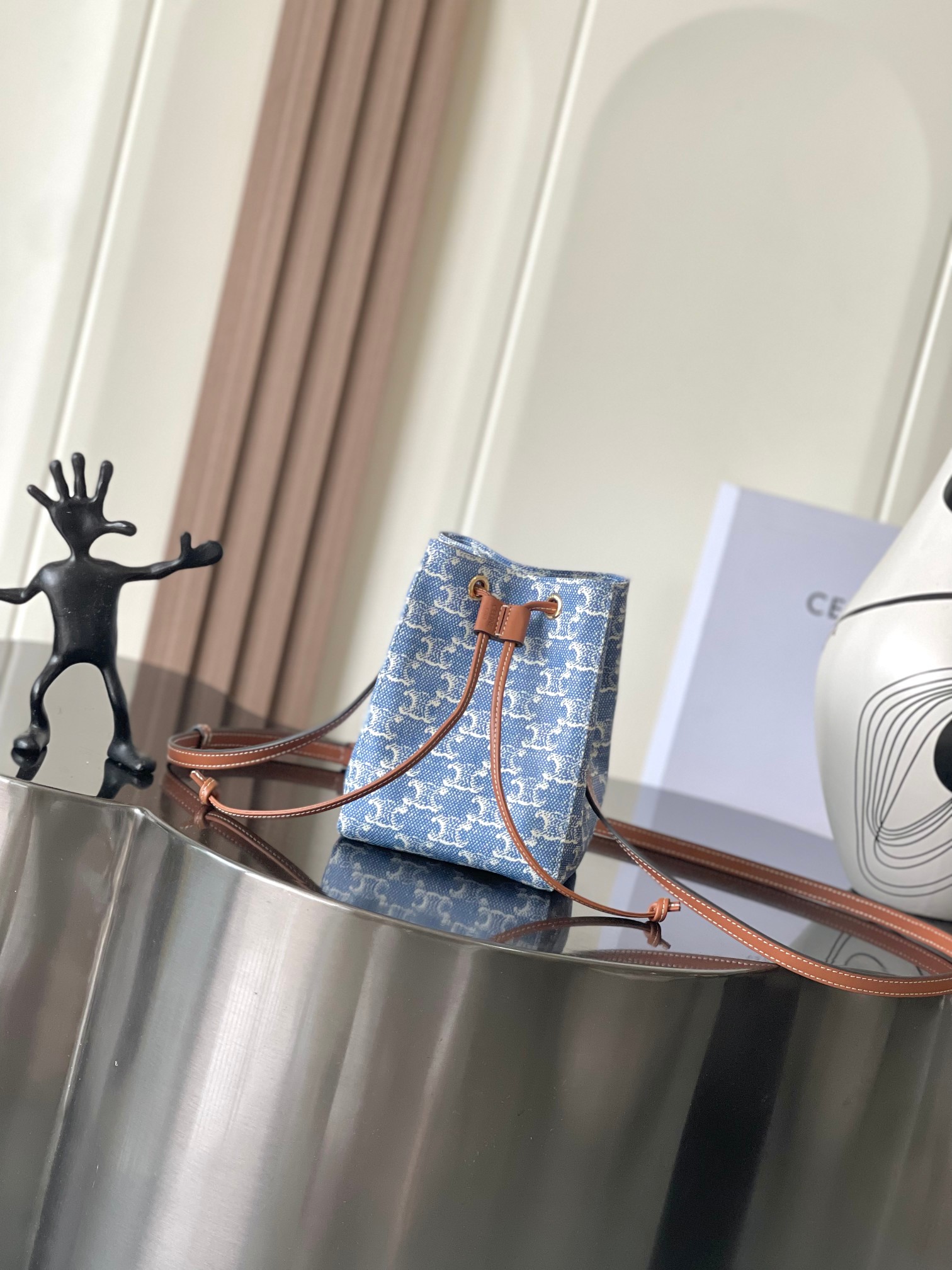 5.1 x 7.1 x 4.3 IN (13 x 18 x 11 CM) textile, trimmings in calfskin TEXTILE LINING GOLD FINISHING Cross-body and shoulder carry DRAWSTRING LEATHER TIES ONE MAIN COMPARTMENT ADJUSTABLE STRAP WITH A MINIMUM DROP 18 IN (45 CM) AND MAXIMUM DROP IN 21 (54 CM) Reference : 10M742GN8.07EW