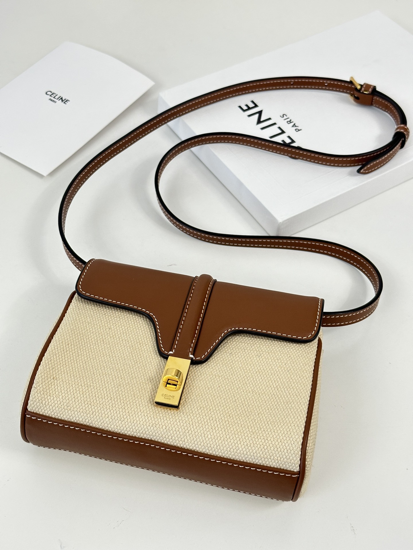 The Celine Soft 16 Mini in canvas and calfskin is a fresh, lightweight take on a classic silhouette. This petite beauty combines buttery-soft calfskin leather with elegant canvas panels, creating a look that’s effortlessly chic, modern, and ultra-wearable.