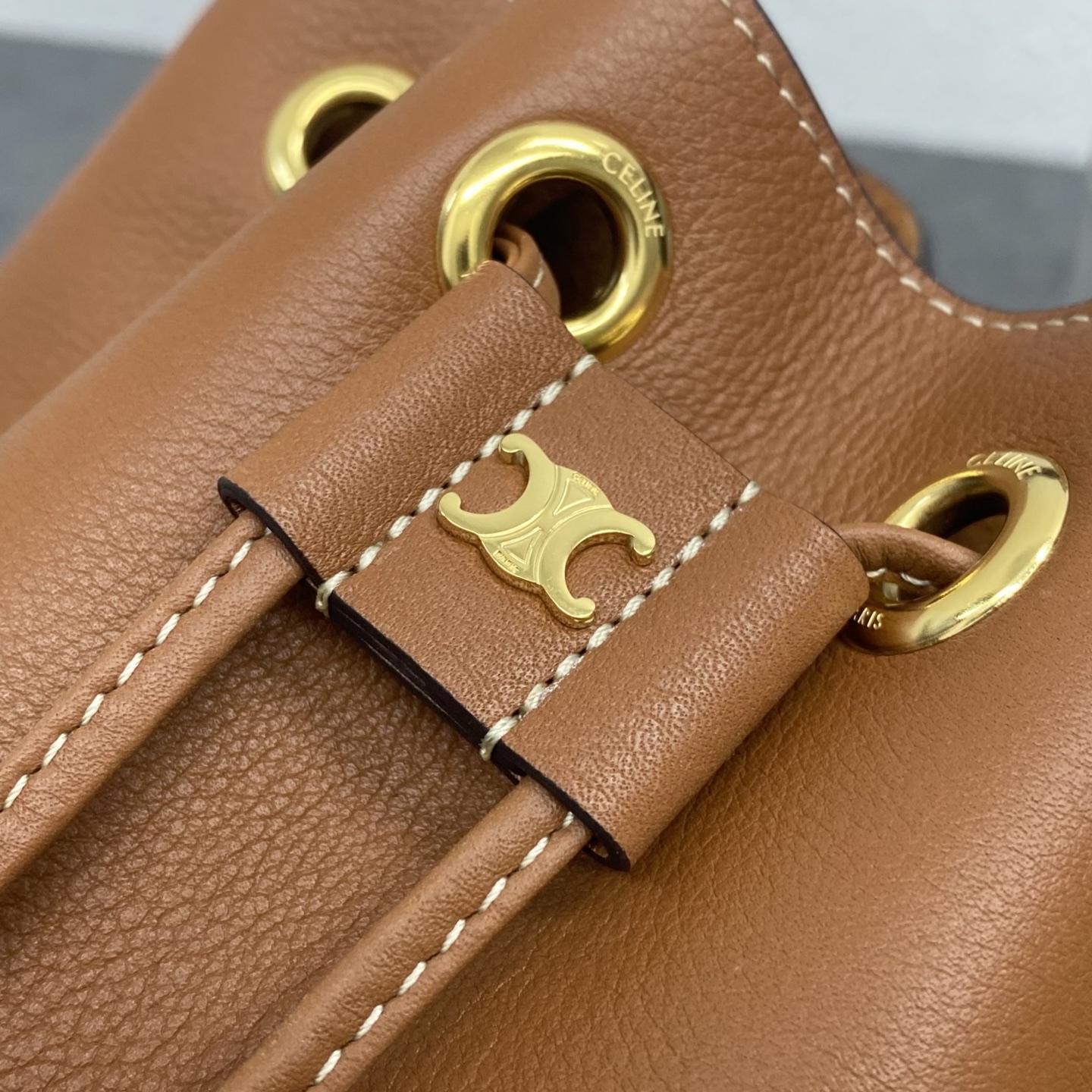 6.3 x 7.5 x 6.3 IN (16 x 19 x 16 CM) Calfskin suede Calfskin lining GOLD FINISHING Hand carry, shoulder carry and cross-body carry drawstring leather ties with decorative metallic triomphe ONE MAIN COMPARTMENT ONE LEATHER HANDLE with 2.76 IN (7 CM) drop ONE REMOVABLE AND ADJUSTABLE STRAP WITH A MINIMUM DROP 16 IN (41 CM) AND MAXIMUM DROP 19 IN (48 CM) Reference : 121673DPJ.04LU