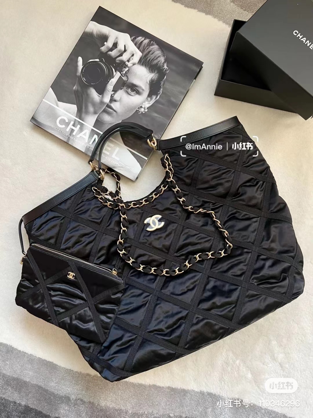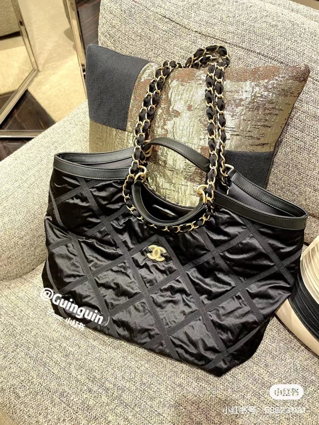 Black nylon MAX shopping bag ♣️ Different kind of sweet grandma, is expected to set off a wave of new fashion trend! Before, in addition to the tannin series can be used simply and roughly, other incense basically need us to be gentle ~ This year's nylon series, finally can not twist the elegant and calm core of incense grandma, but also can perform the mission of bag as a storage product! This is the ceiling of shopping bags! Large canvas diamond pattern + glossy nylon stitching leather bag edge, should be the soul of this series, this is my selfish super love ~ on the right!