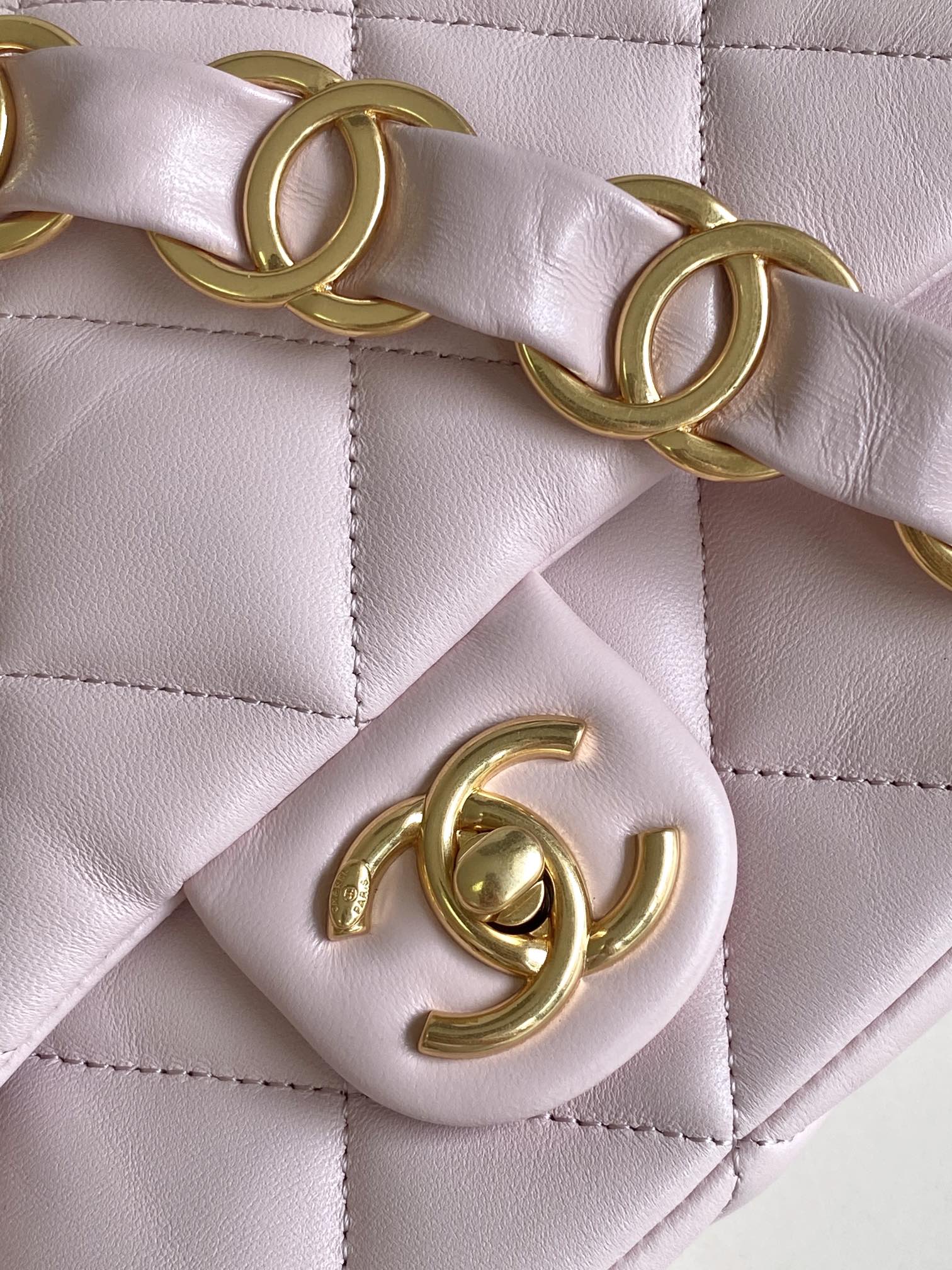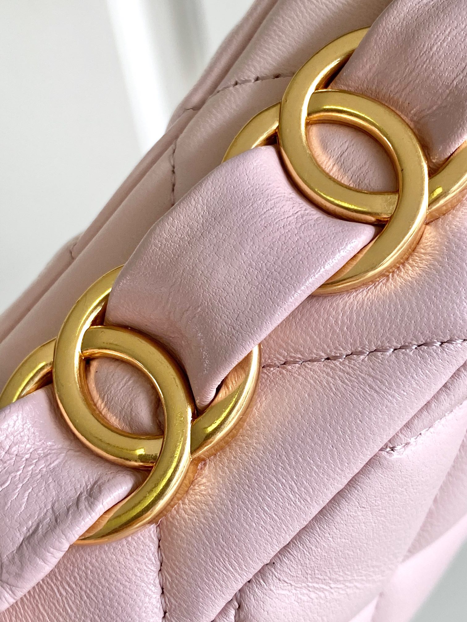 Bright pink large Hobo bag 🚩🚩🚩OHANEL24K new autumn and winter collection hobo shoulder bag 🆕The most popular item of the season 👏, very popular 🔥, suddenly get its cute shoulder strap with double C logo retro and unique, fell in love with it at first sight ❤️Full copper 24k retro gold ➕ZP small goat leather, simply too exquisite ☑️🉑️Casual and relaxed, 🉑️cool and trendy, perfect for autumn and winter outfits to match with coats and jackets 🧥Carrying it by hand is very elegant! A must-have versatile and trendy item. Size: Small 19.5cm, Large 22cm.