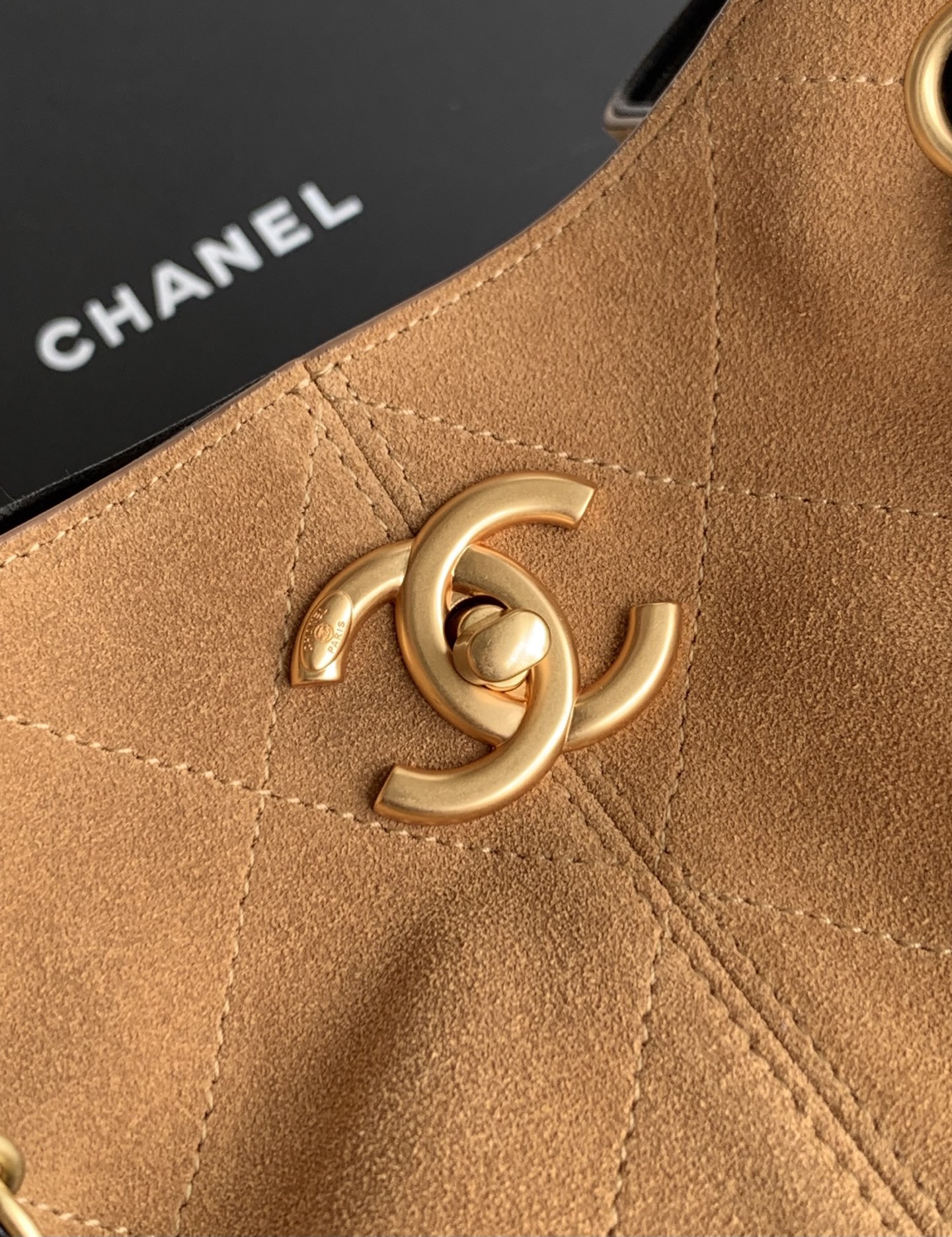 CHANEL Suede Calfskin, Shiny Lambskin & Gold-Tone Metal Beige & Black