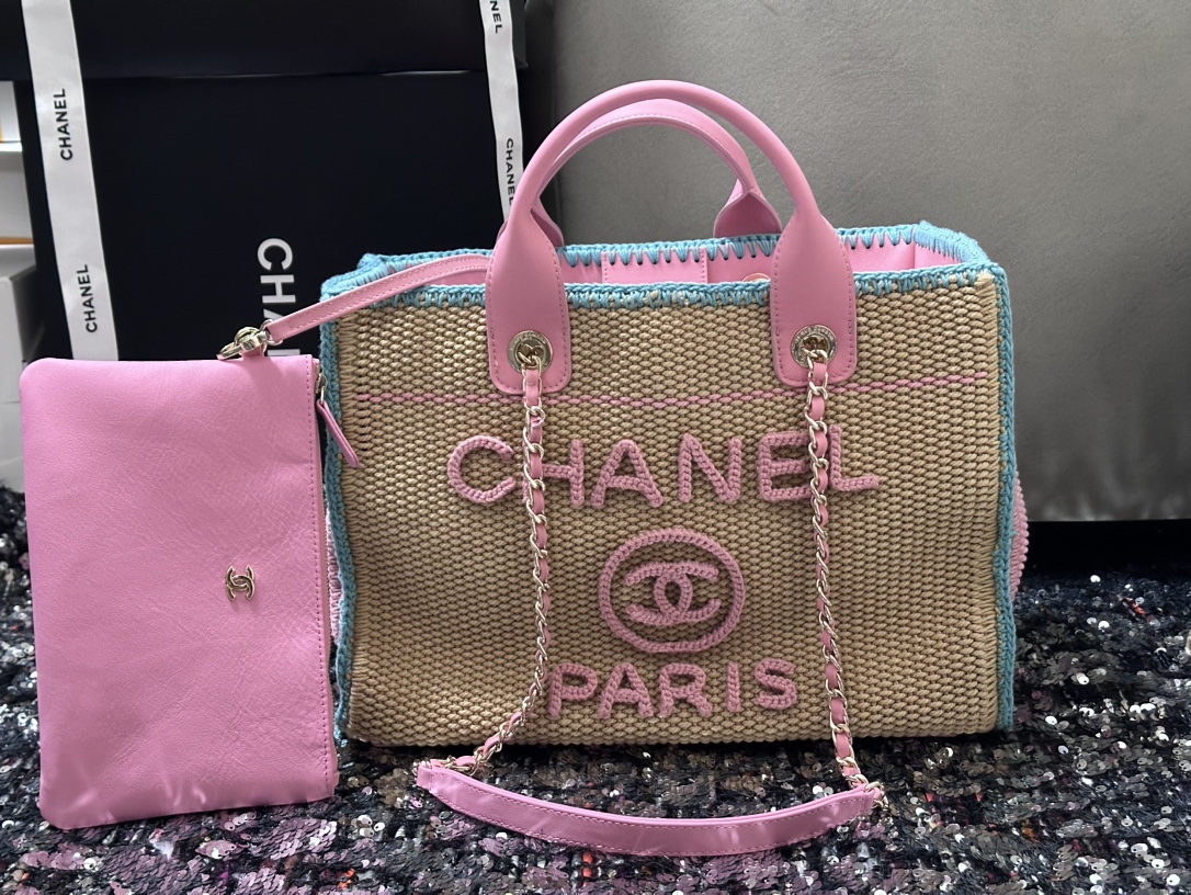 Chanel 24s woven beach bag 🏖️🌟 32cmWoven crafts 🍭 Colorful pink collection ✔️