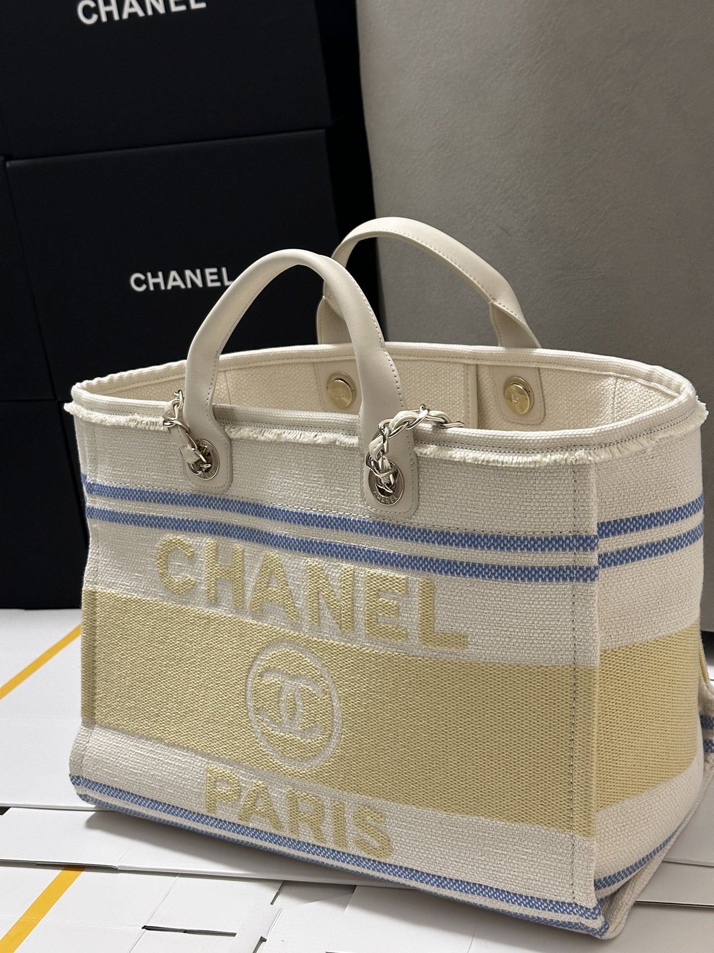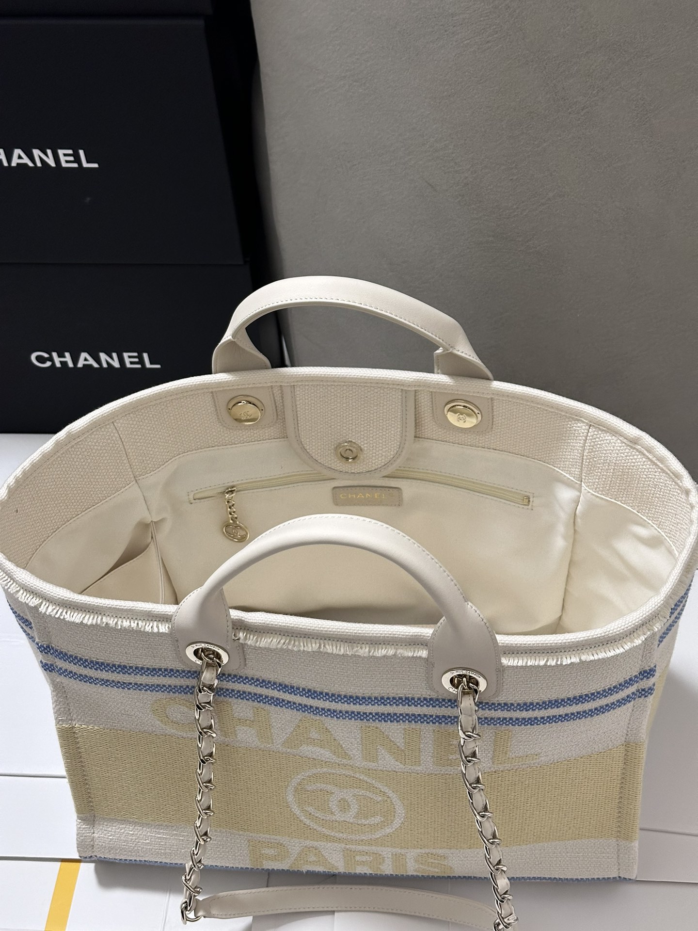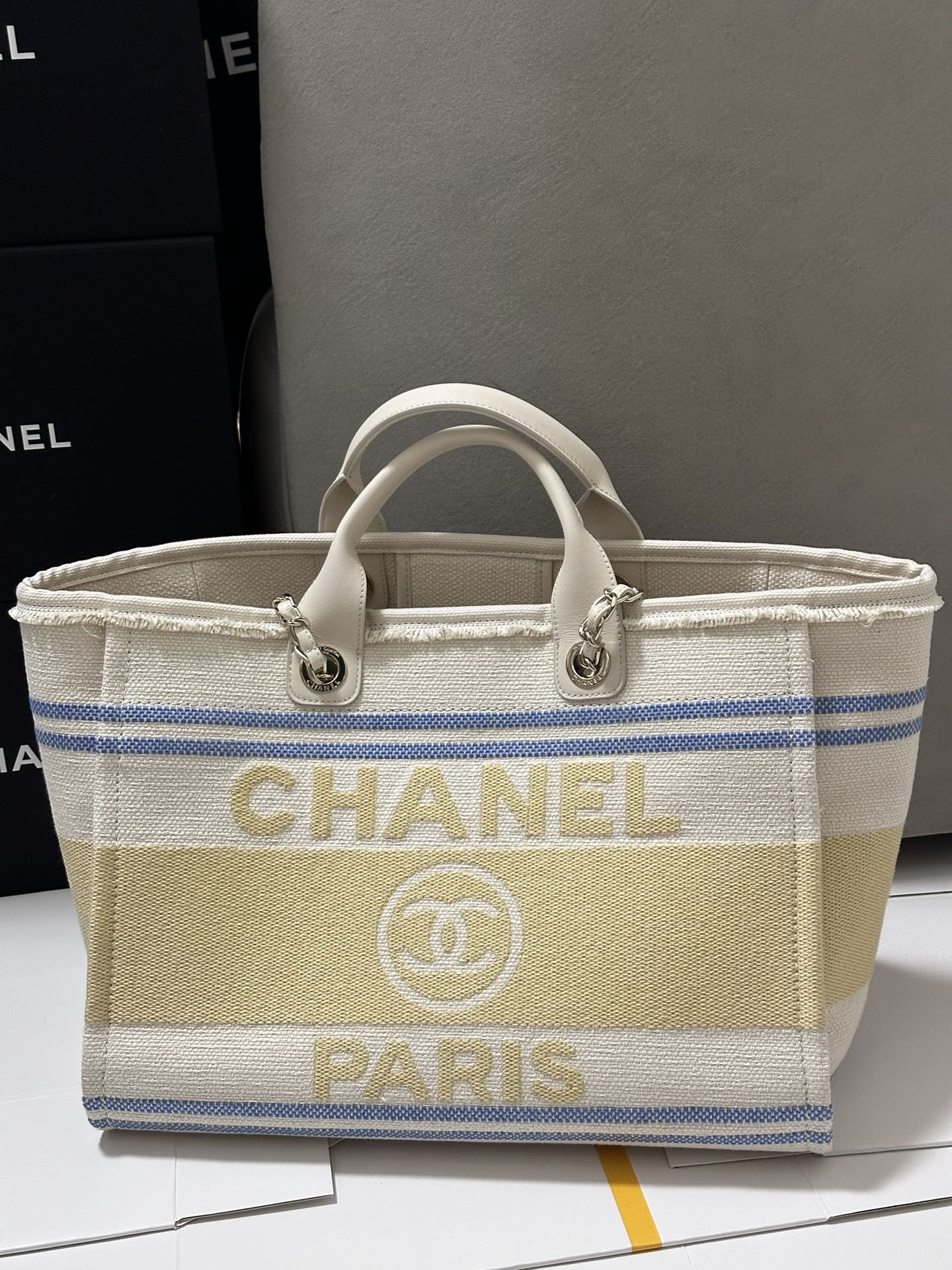 **Chanel 25C Early Spring Beach Bag 🏖️ Yellow** 🍋 Perfect for the holiday vibe! 🤩🏄♀️ Large size 38cm Medium size :34cm