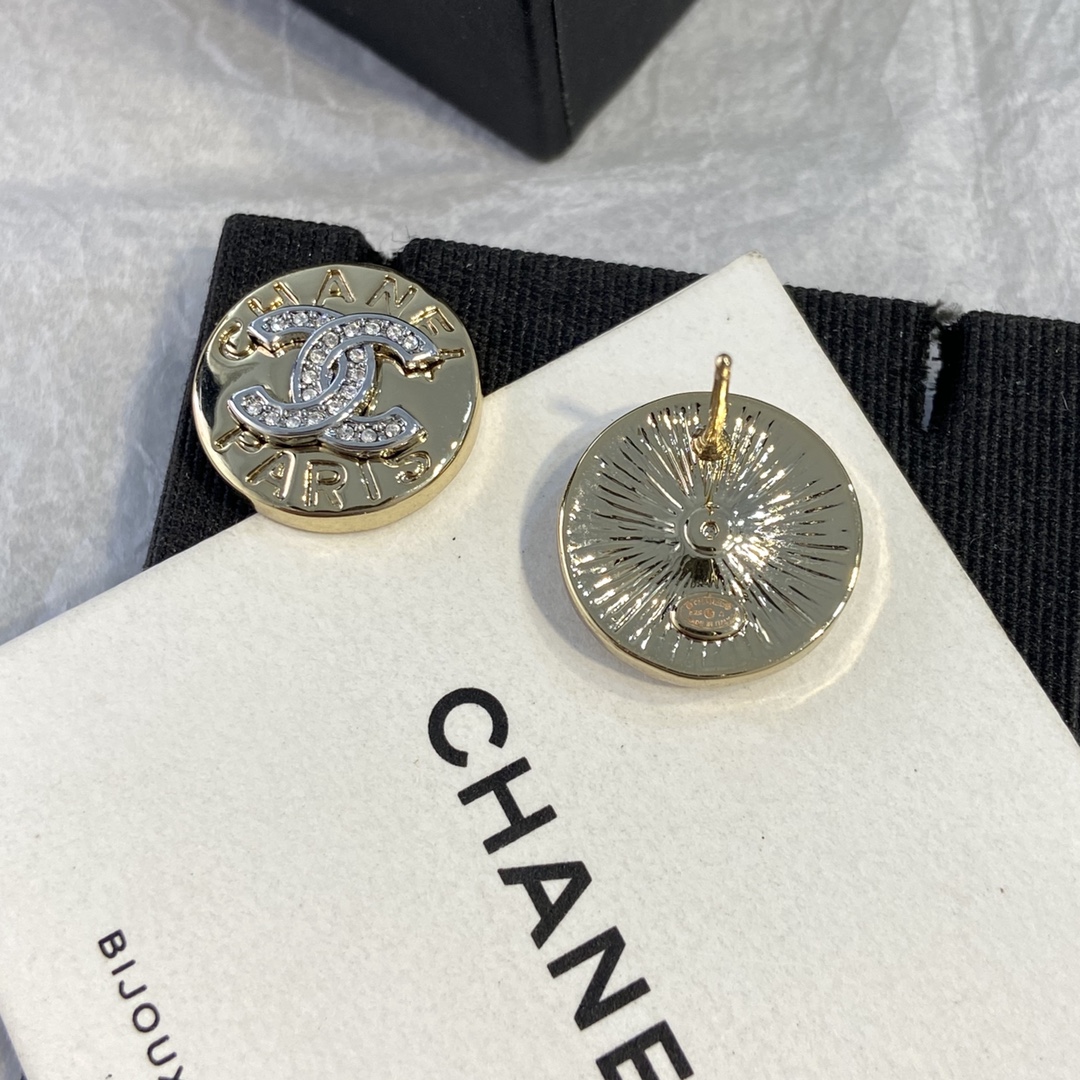 Chanel Button-Style Round Earrings