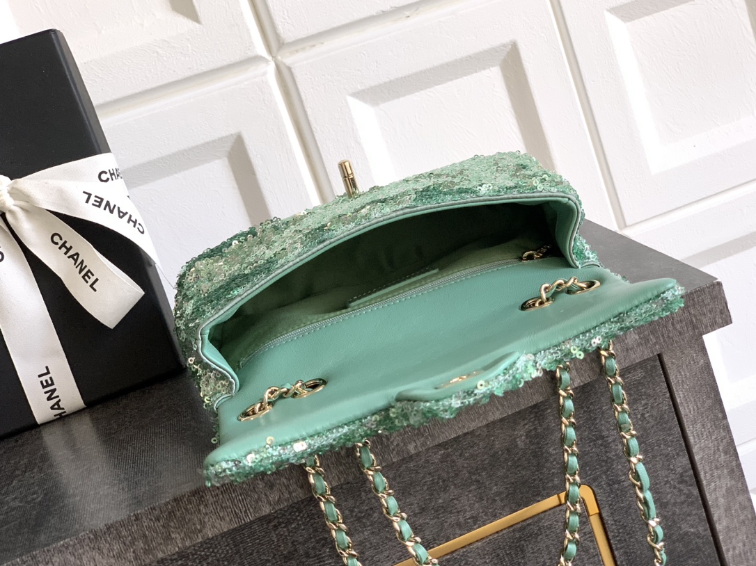 Shipping Now! 💚 “Green Lava Clasp” – Chanel Sequin CF Bag