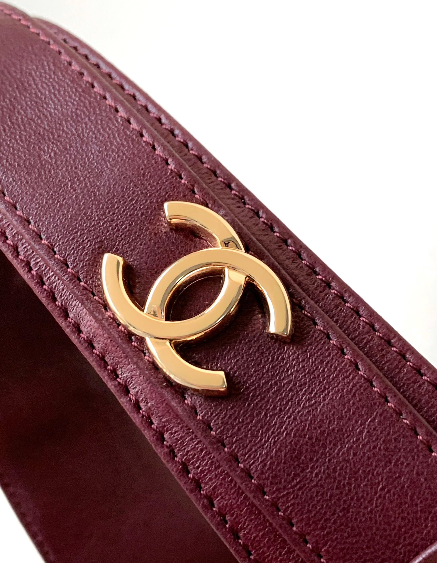 The corners are flawless with no wear, and the calfskin leather remains glossy and intact (super durable). The large gold clasp and leather-woven chain are bright and untarnished. The interior is clean.