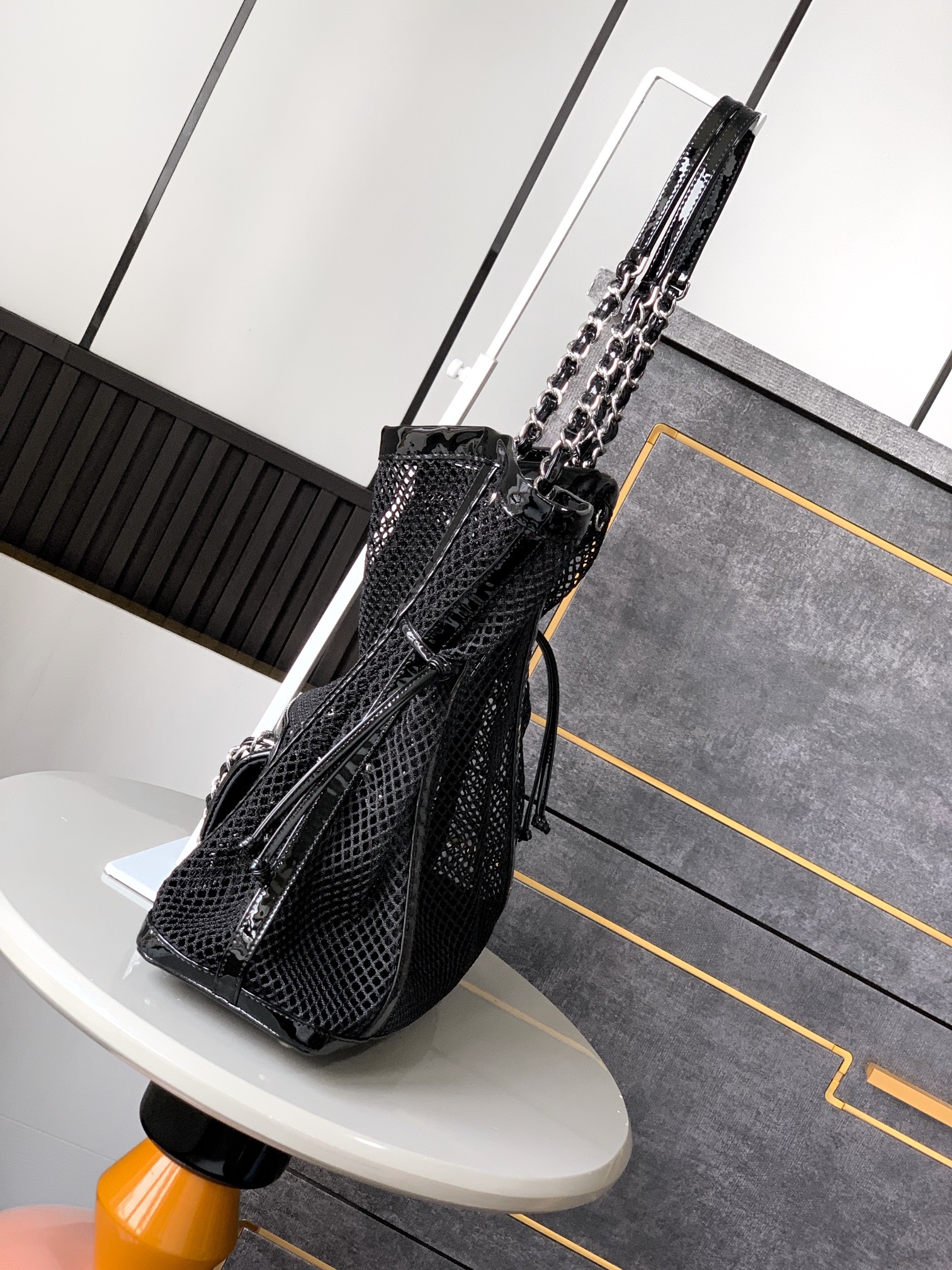 The most genius CHANEL bag ever? This mesh-patent hybrid screams millennium it-girl energy. Switch between grunge and glam in 5 seconds flat!