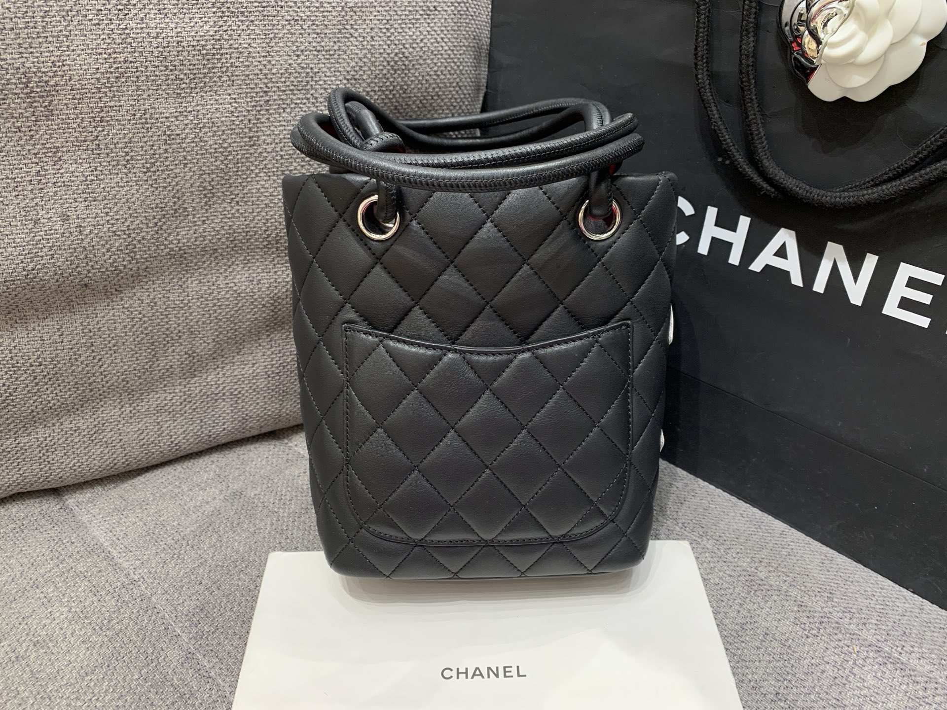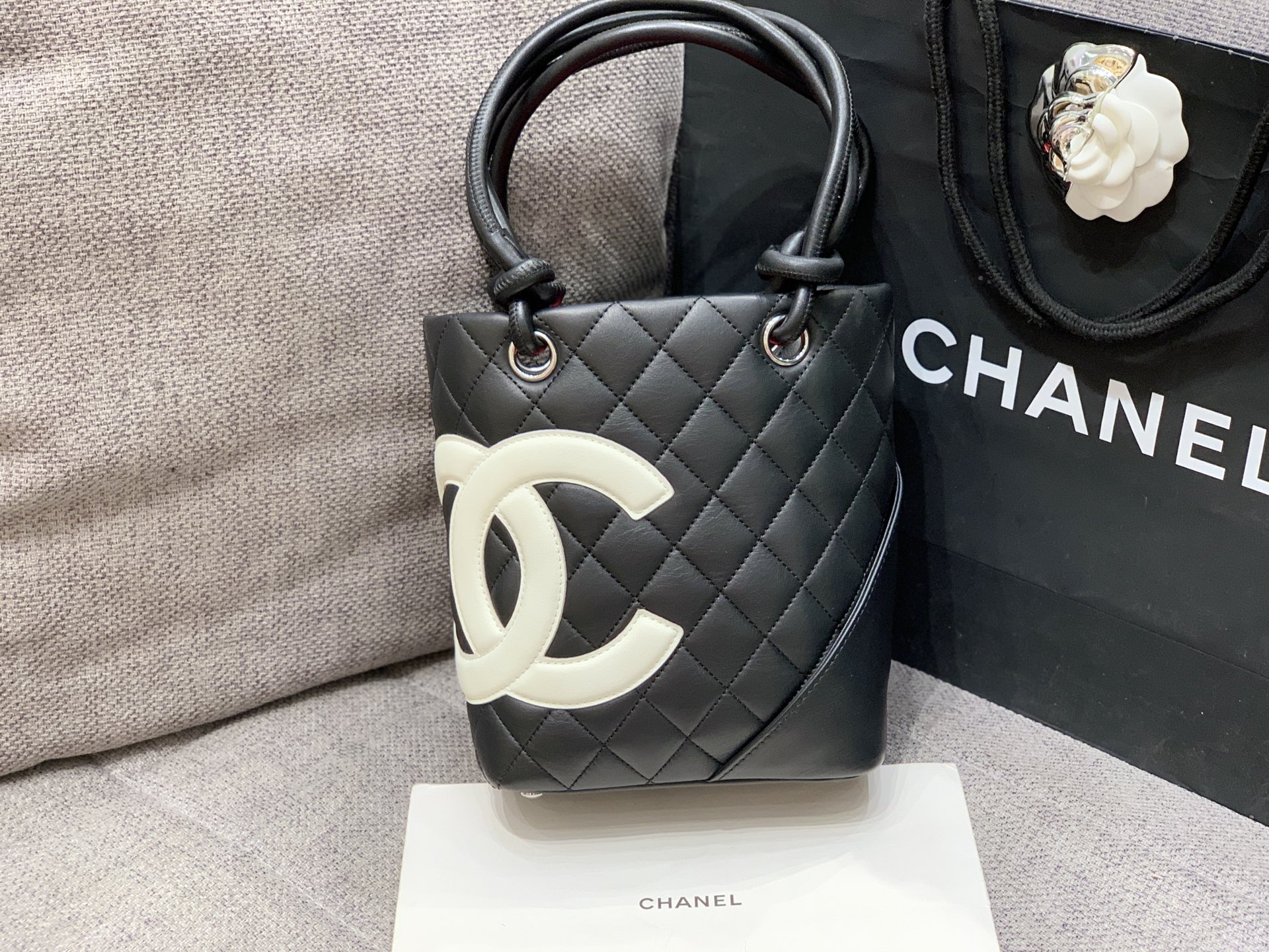 Crafted from supple black quilted leather with exquisite texture and dimensional depth, this elegant piece features a distinctive knotted handle design that adds a playful yet sophisticated touch. The bold oversized white CC logo creates a striking contrast against the rich black leather, making a powerful style statement.
