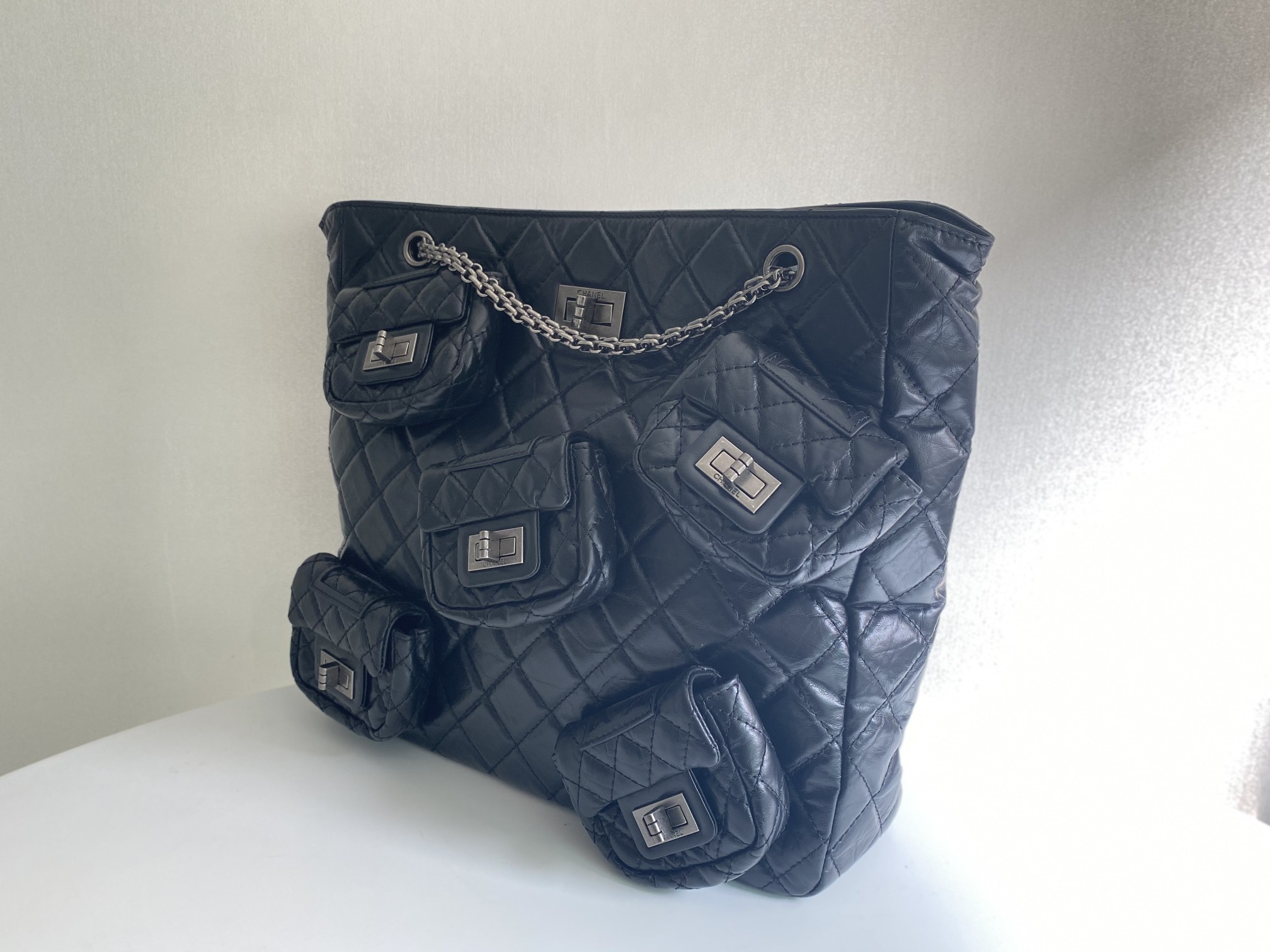 Chanel vintage multi-pocket tote upper body is simply not too handsome 🆒 out of the street almost no bump bag possibility! Full of design package 5 decorative small bags can play open things how practical a bag leather and durable not delicate classic black and silver color how to look good! Size: 33x9x30cm 2698