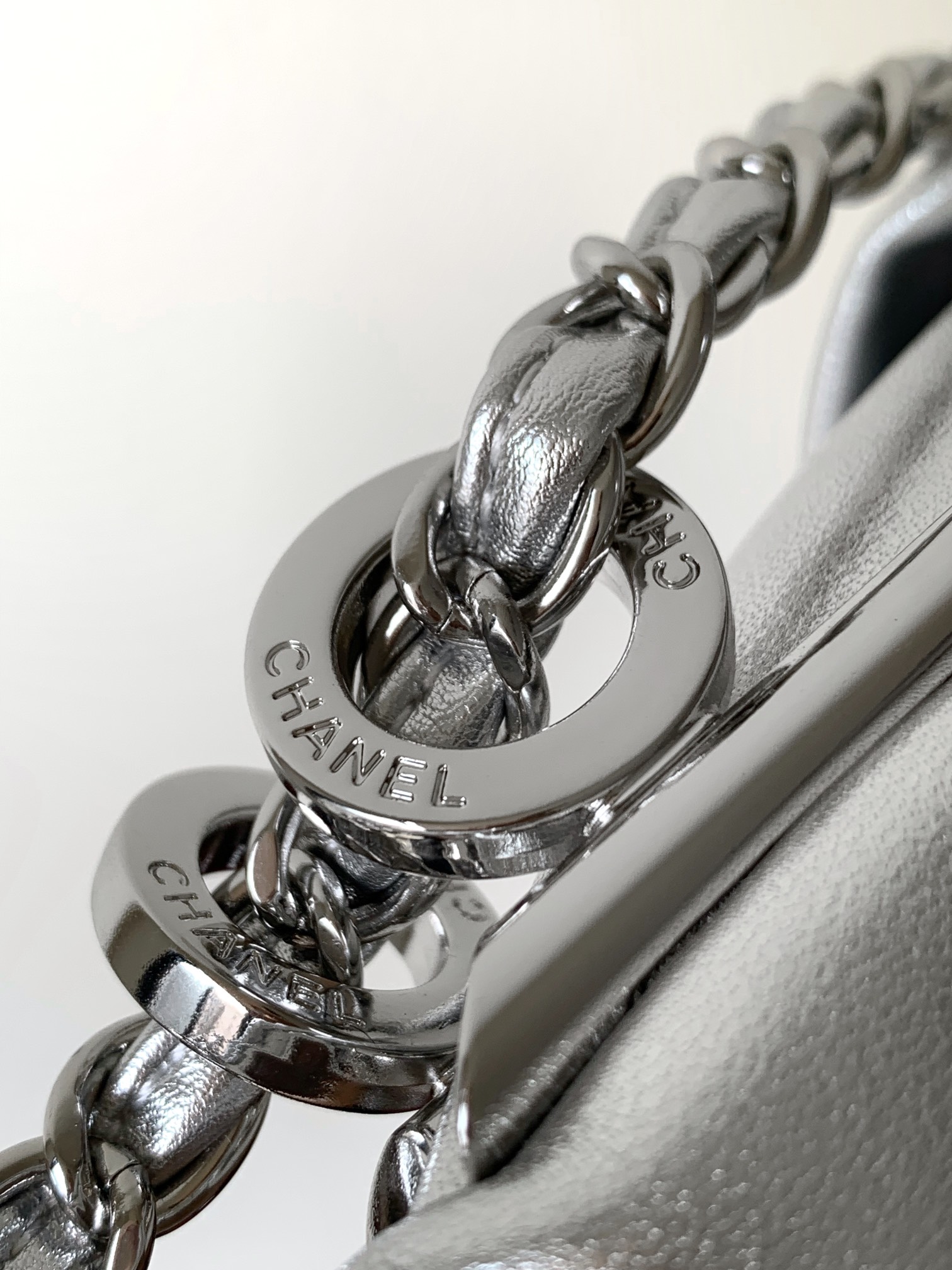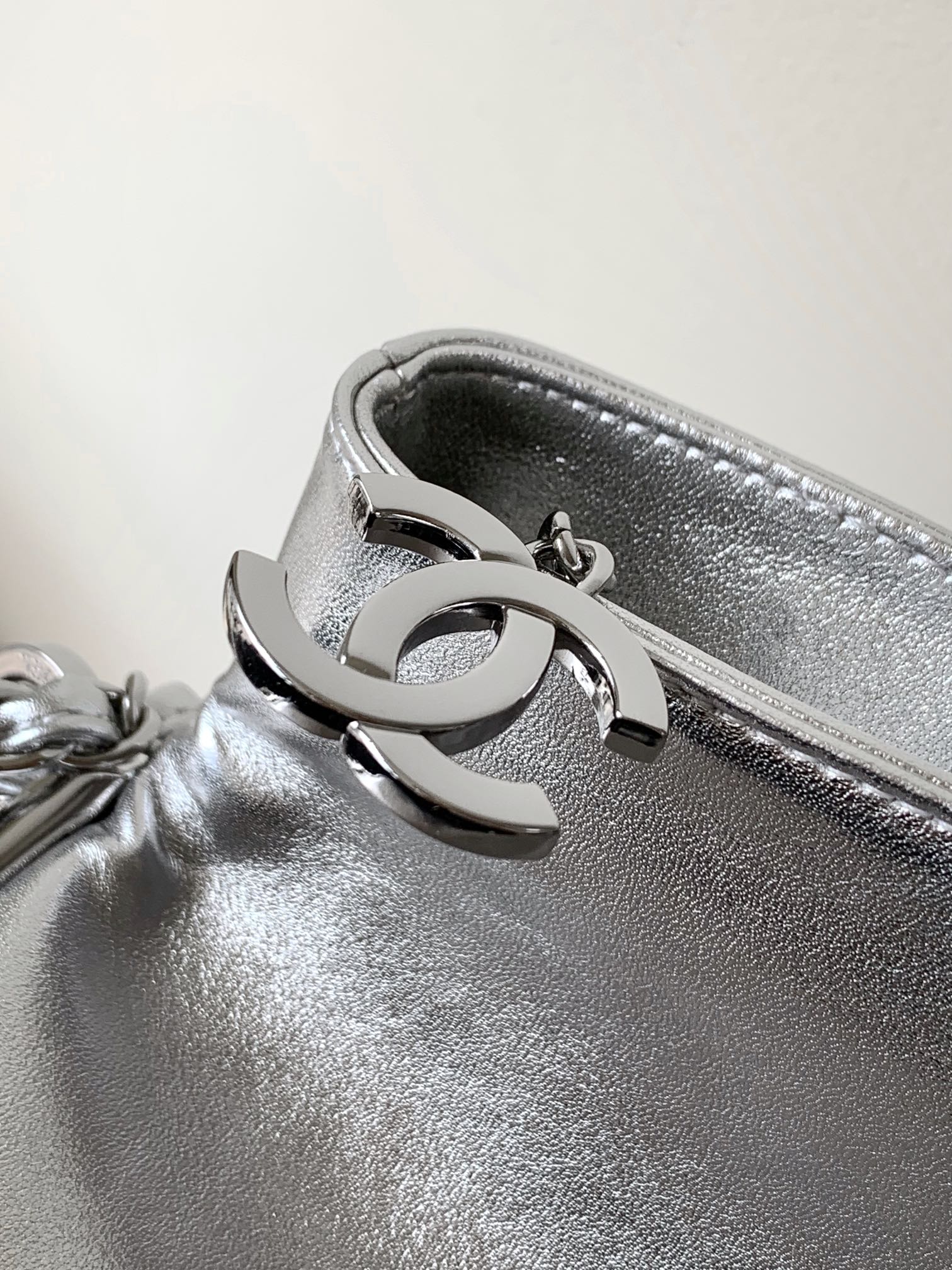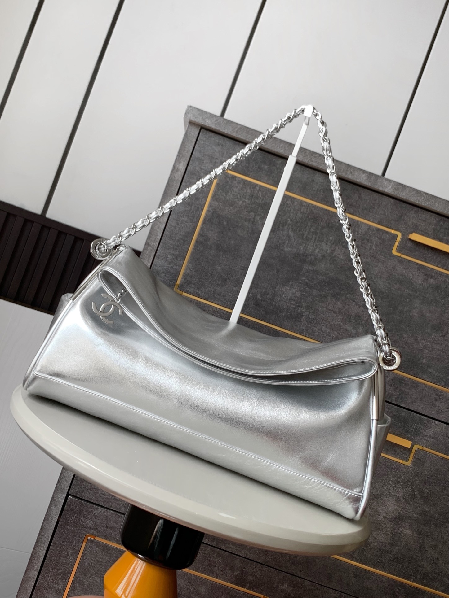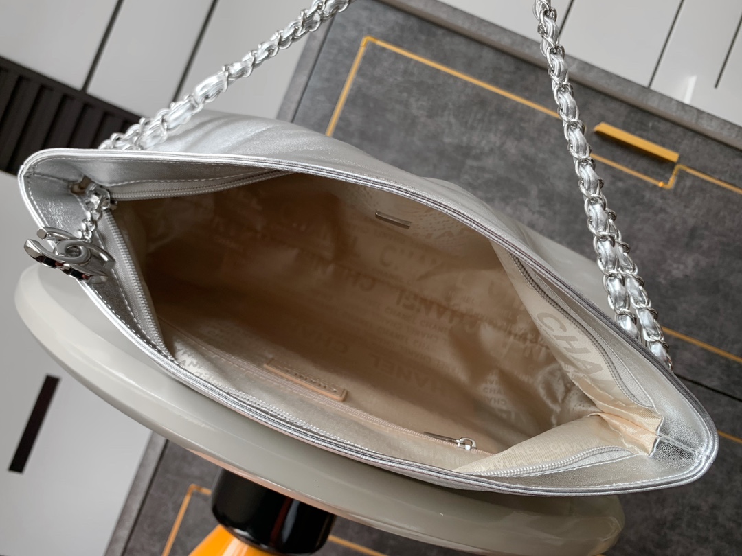 Crystal silver 🚩🚩 large size 🤩🤩🤩 no diamond line design! Leisure and comfortable new product 🆕 presents another classic taste, I believe it is not difficult to become the new favorite of Chanel fans OHANEL🚩🚩🚩 black and silver hobo is really good with the sisters shopping I back it, commute to work back it, this black and silver hobo perfect for various occasions, how to do soft bag type casual elegance and very cool! The outer seam to create ringer pattern appears very atmospheric, zipper and side double logo is very attractive, with black and silver system cold and advanced such a model belongs to find a less one Jimei come to join it 🤩️️️