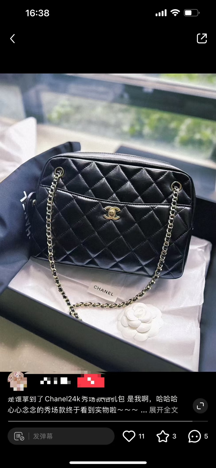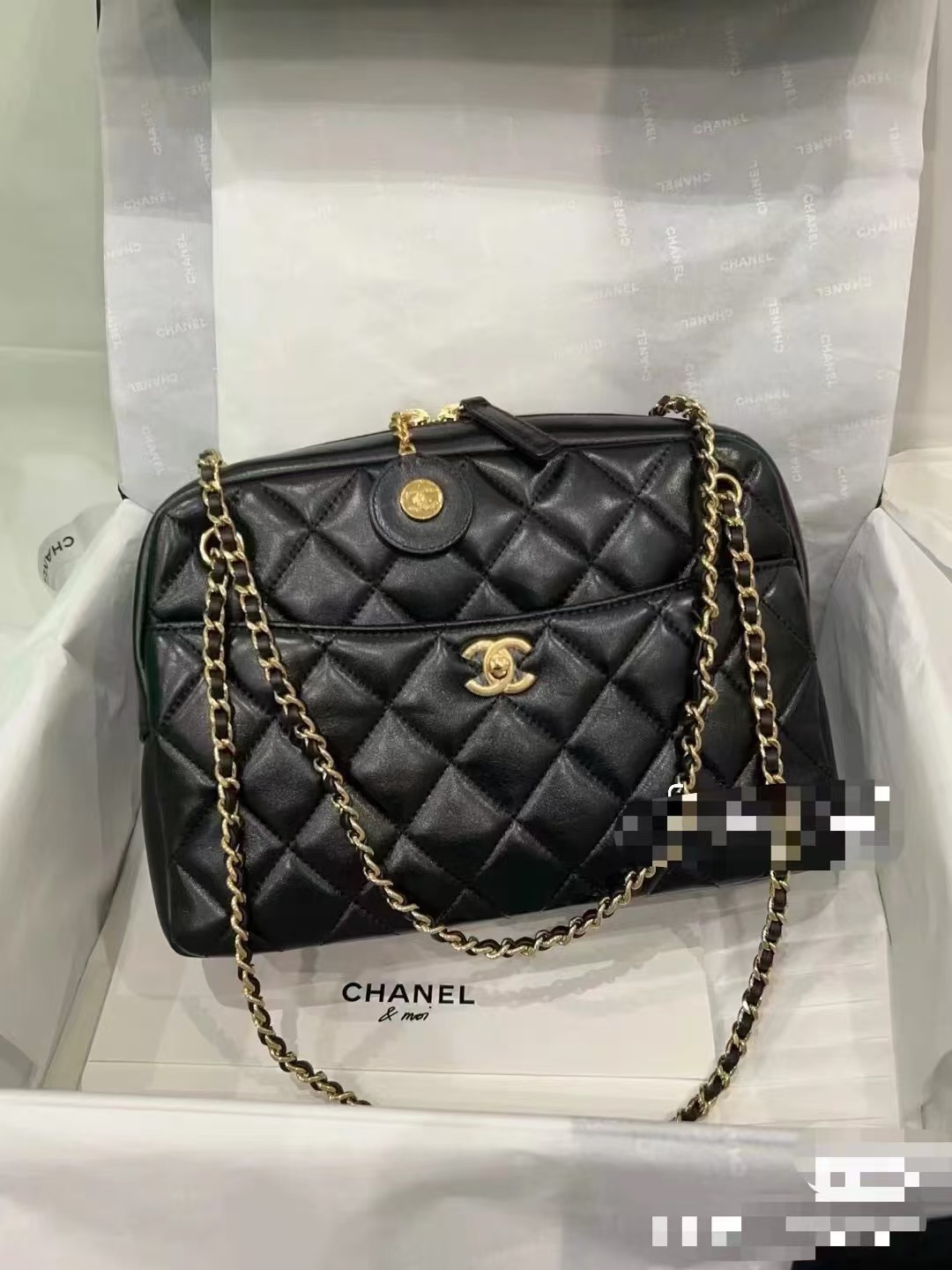 Book the large 24cm 🀄️OHANEL Gold Coin Microbadge Camera Bag. This bag is really just right to go out, 🉑️ with some coin purse, passport, lip lipstick 💄 feeling great 24k another camera bag/this one is really more convenient to the eye, like this soft and smooth lambskin line, the chain length is just right, it is a double zipper, the other zipper head is a double c nameplate, it is very beautiful! Dimensions: 19X 24 X 9cm