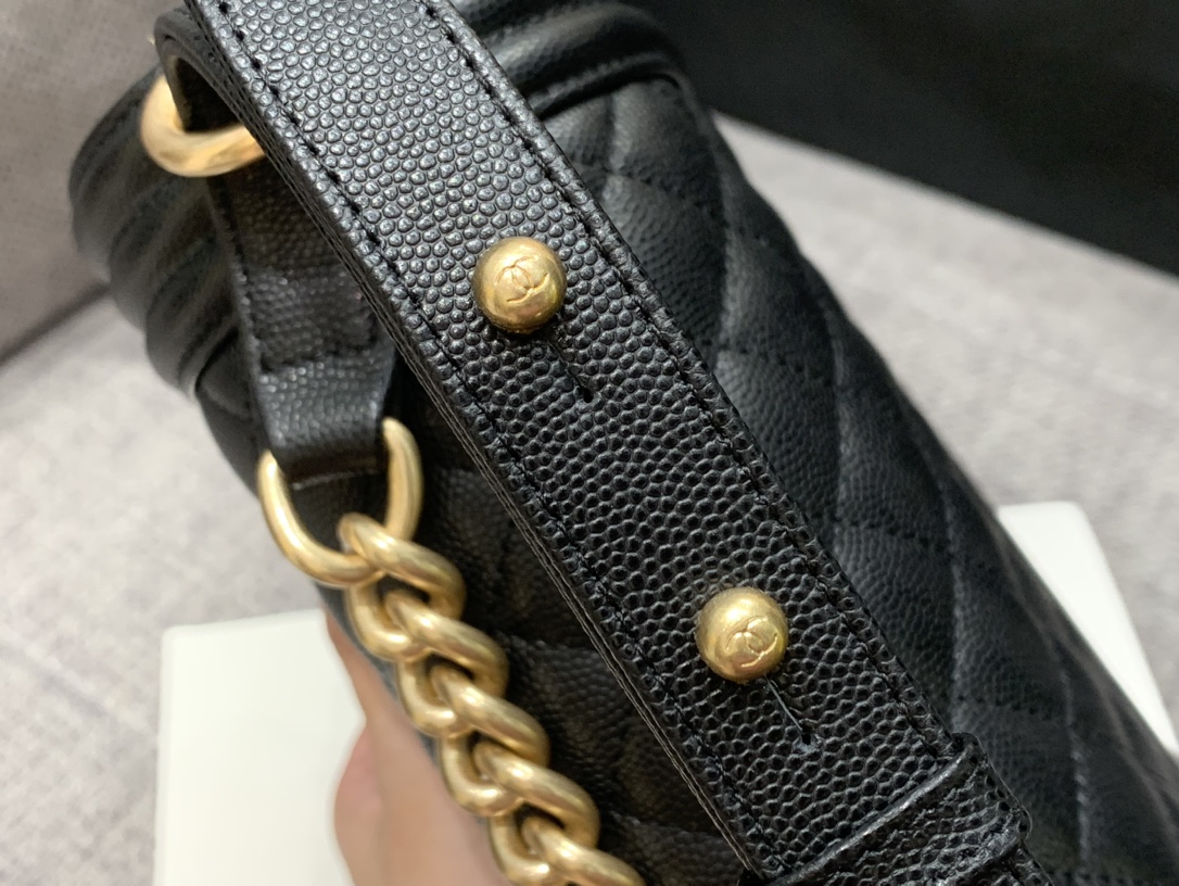 Imported cowhide antique gold buckleLeather: CaviarSize: 25cm