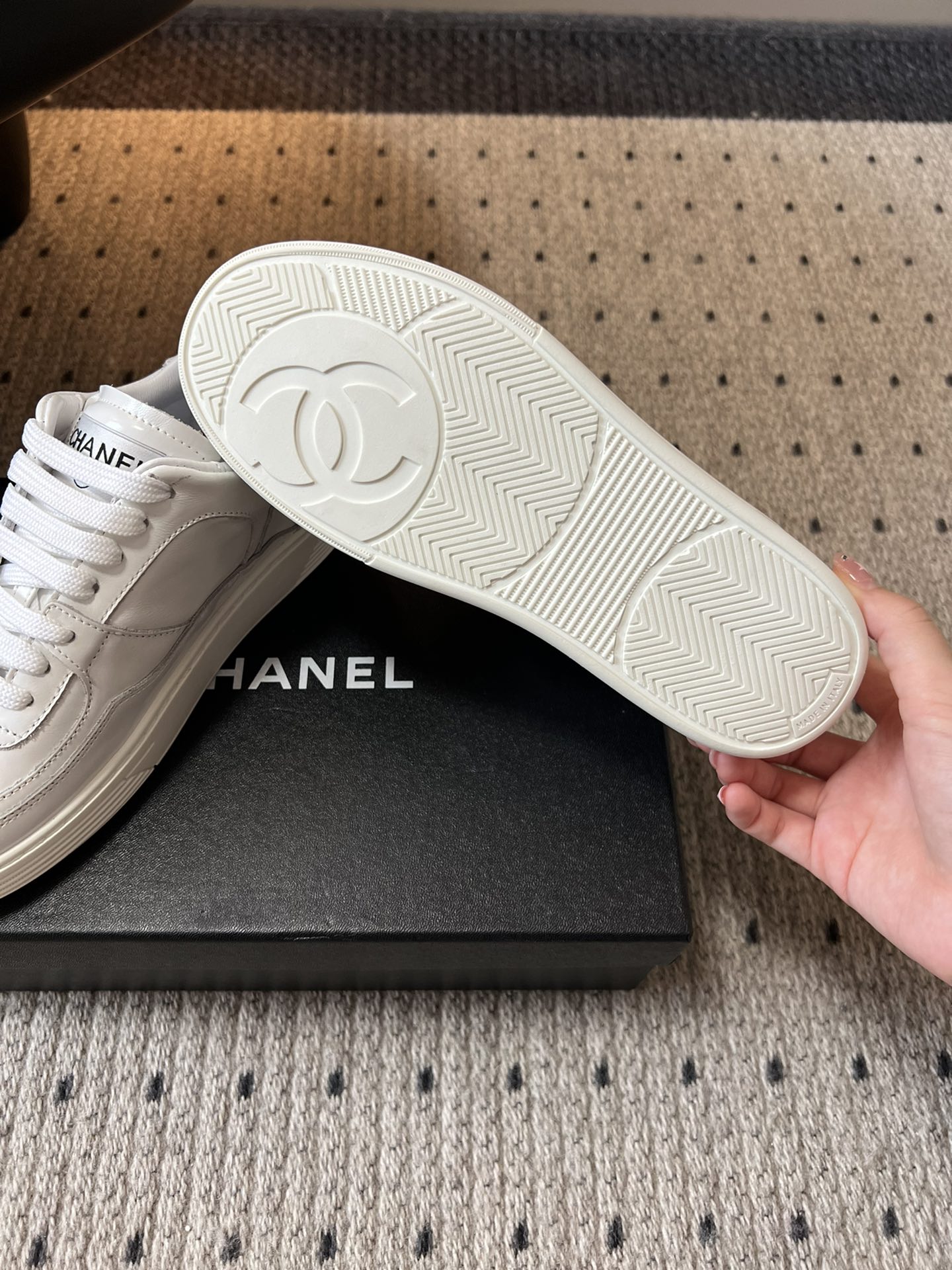 CHANEL Patent Leather Low-Top Trainers Light Beige