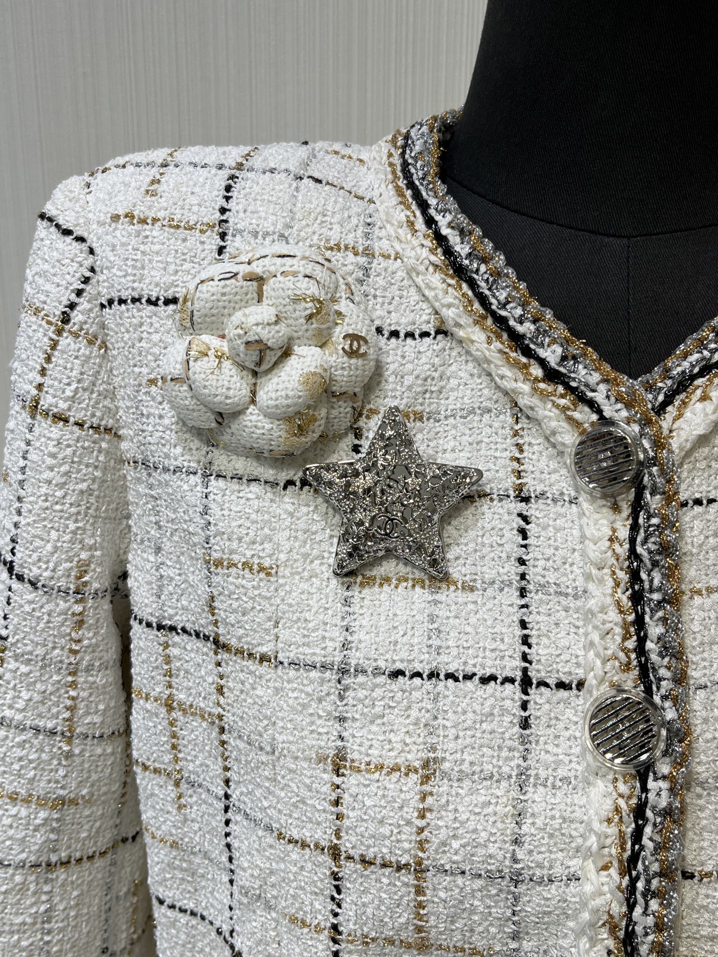 CHANEL Silver Hollow Star Brooch