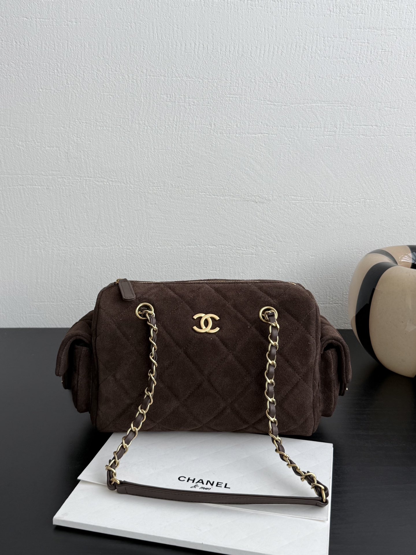 Chanel Small Bowling Bag Dark Brown Suede