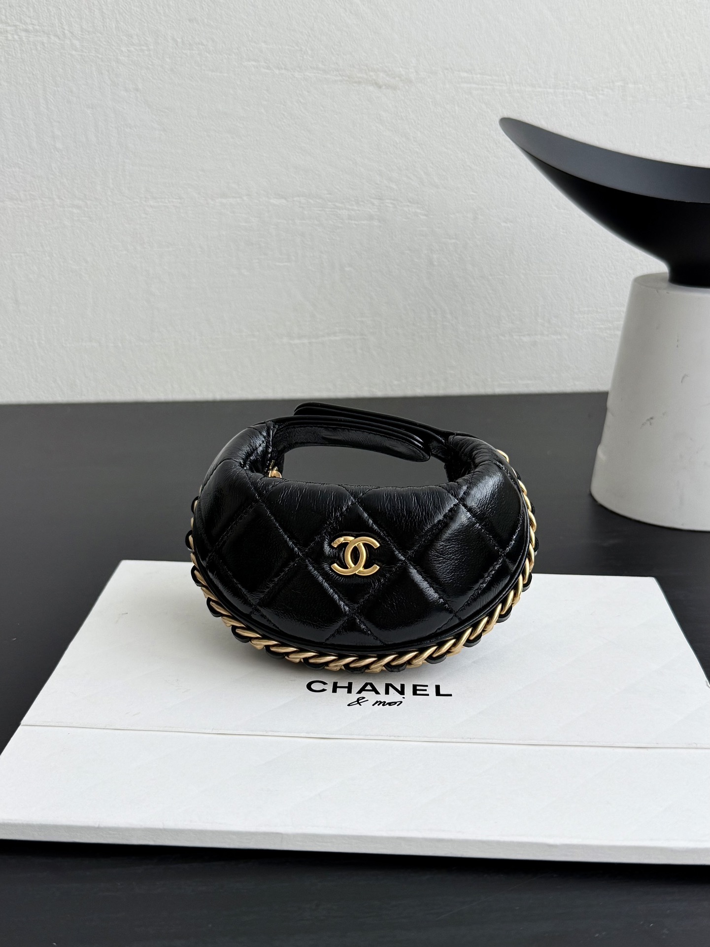 Chanel 24A Chain Hobo Bag Black