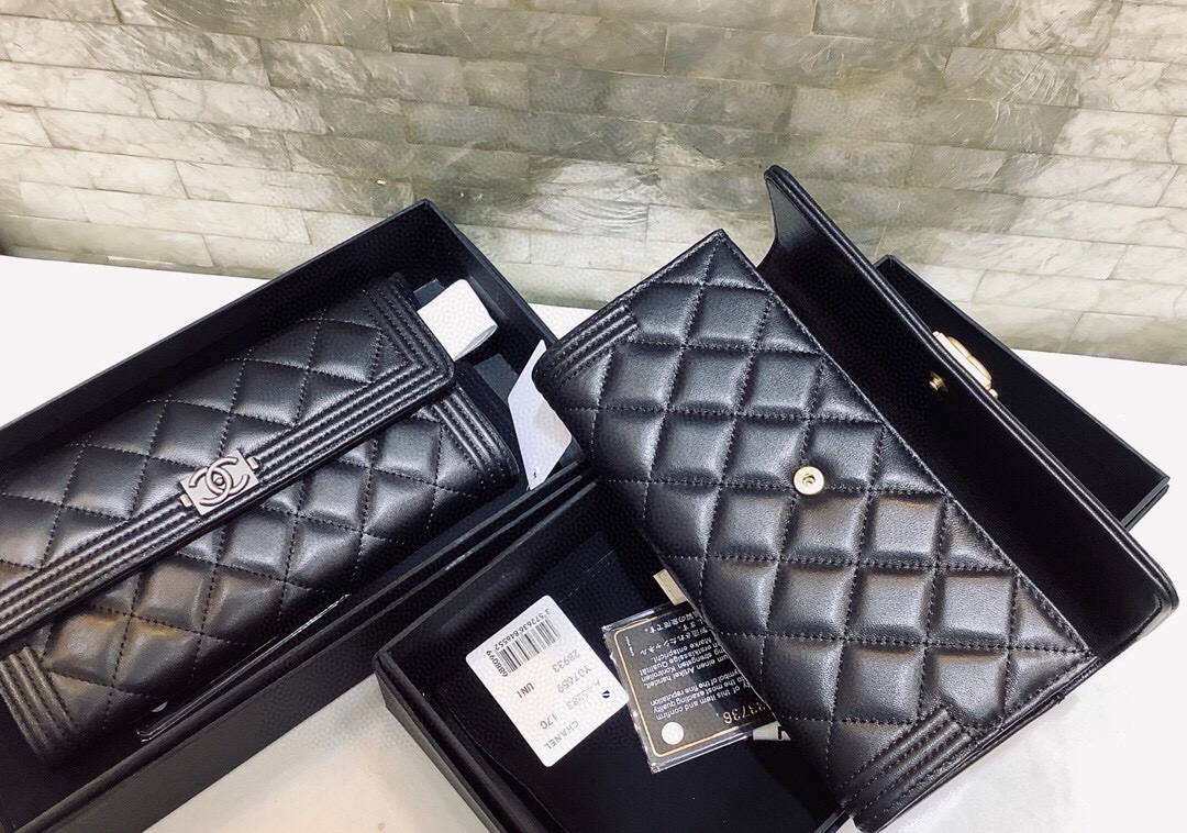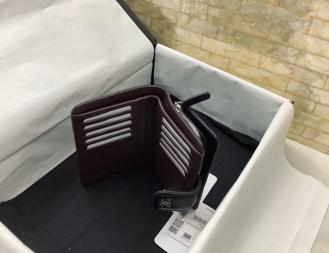 CHANEL Pebbled Leather Tri-Fold Wallet