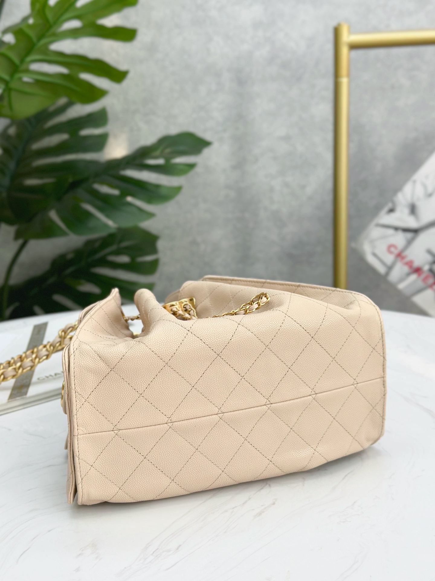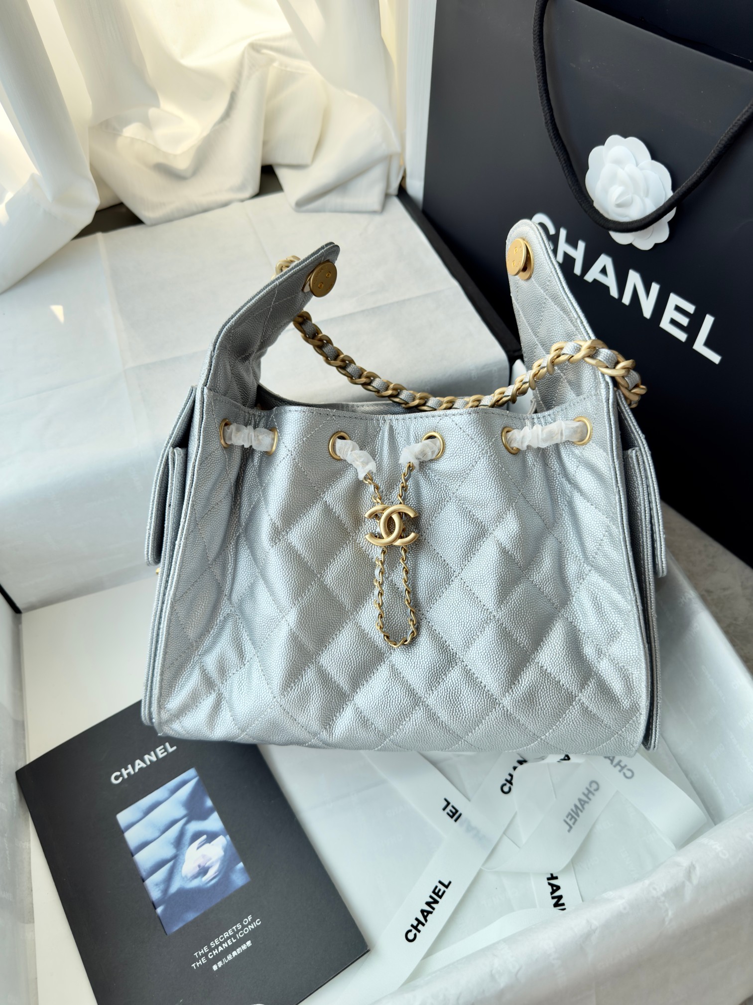 Chanel-25C Caviar Leather Hobo Bag -sliver