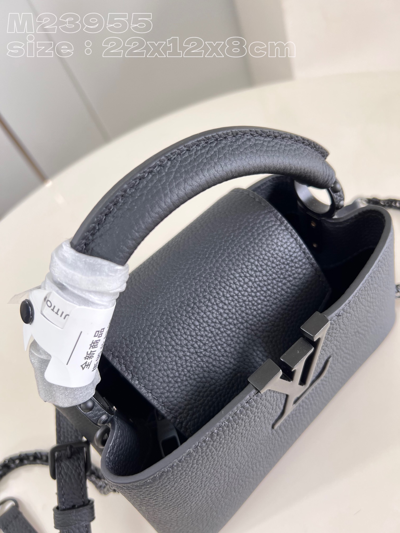 [Exclusive real shot M23955/mini] This Capucines mini handbag adopts a horizontal configuration, bringing a new interpretation to the brand's classic design. Rich cow leather and metal hardware have a matte finish, and there's plenty of space to easily store your cell phone, long wallet and other daily essentials. Removable and adjustable leather shoulder strap allows for more styling possibilities.