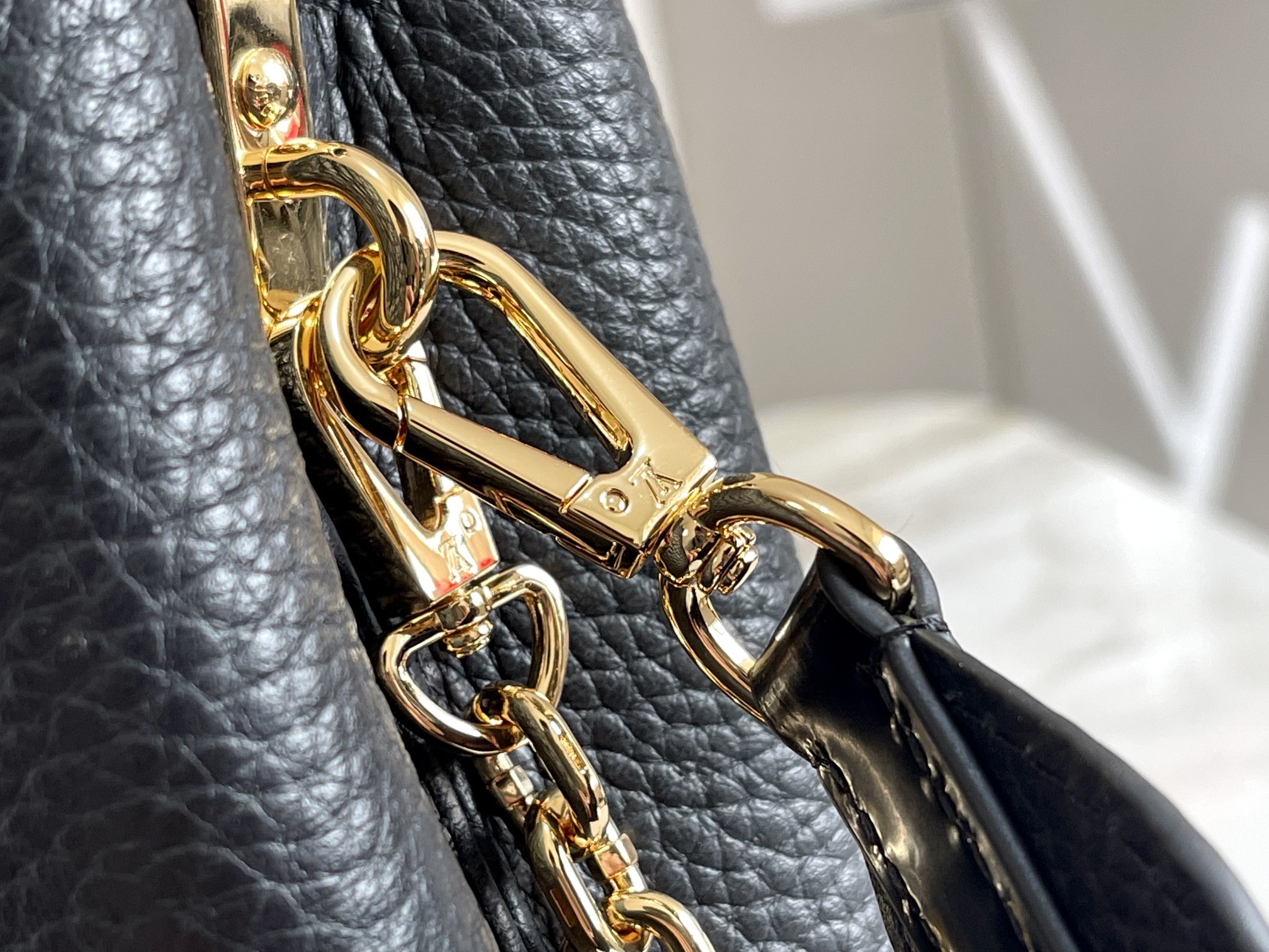 🆕New Product✨Top Original Order📎M59205/M48865 Black Floral Chain Terms🌸 This Capucines mini handbag is made of full-grain Taurillon cow leather, with Monogram floral engraved letters that look like jewelry and are connected in series to the Yingze chain. The leather handles and logo are decorated with subtle metal Coating 🌾 shines with gorgeous style in day and night occasions