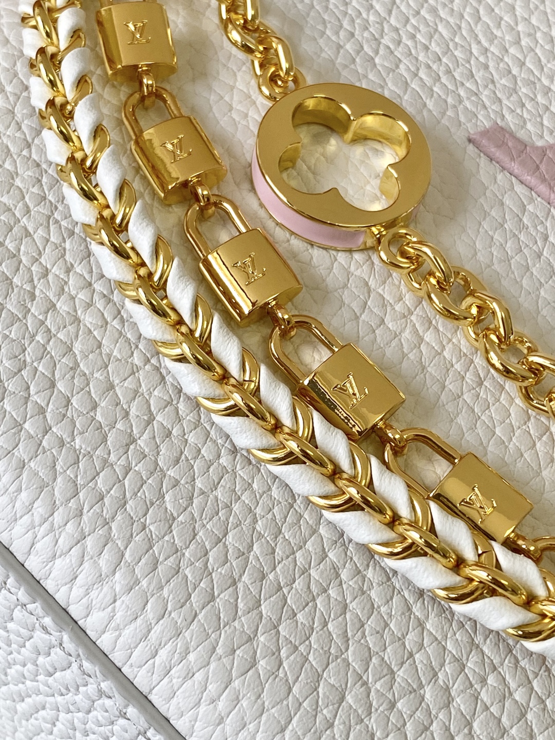 • Gold-toned hardware with enameled details