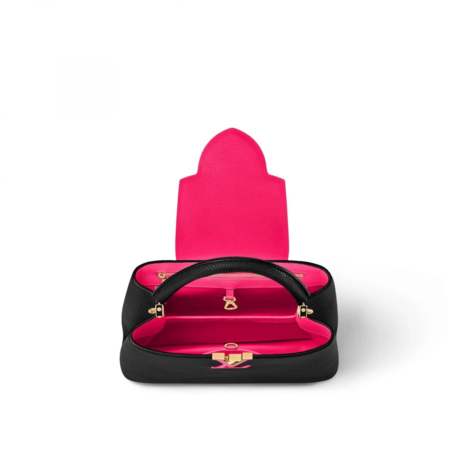 The Maison revisits the Capucines MM handbag this season with a sophisticated colorblock edition. Made from full-grain Taurillon skin, the bag’s two-way flap and leather-wrapped LV signature are rendered in a fresh and fashionable contrasting hue. An elevated everyday companion, this model comes with a wide, detachable strap for over-the-shoulder wear.