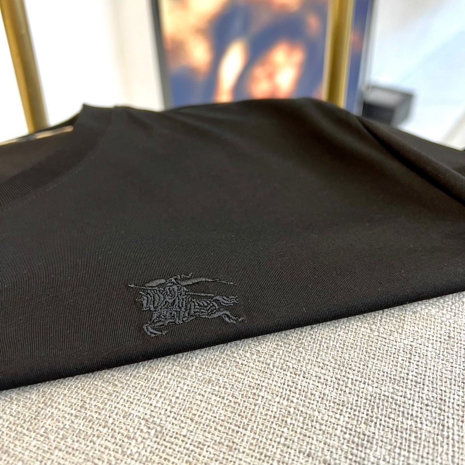 Bur Burberry, high quality (ice oxygen cotton) 24s early spring new release short sleeve T-shirt! High-quality double-sided ice oxygen cotton fabric round neck short T, made of custom woven jade silk, fabric feel silky, crisp and drapiness are quite excellent, while losing the skin permeability and moisture absorption, is the best choice for daily commute wear short T, body contrasting color car line details, so simple and personalized! Open line sewing tape reinforcement shoulder, high weight ribbed collar splicing, and the basic casual version cutting process, tightly stitched smooth line details, enough to achieve the perfect upper body shape, quality control details control must enter the single product recommendation! 48-56 (Model 173,143 kg upper body size 50)