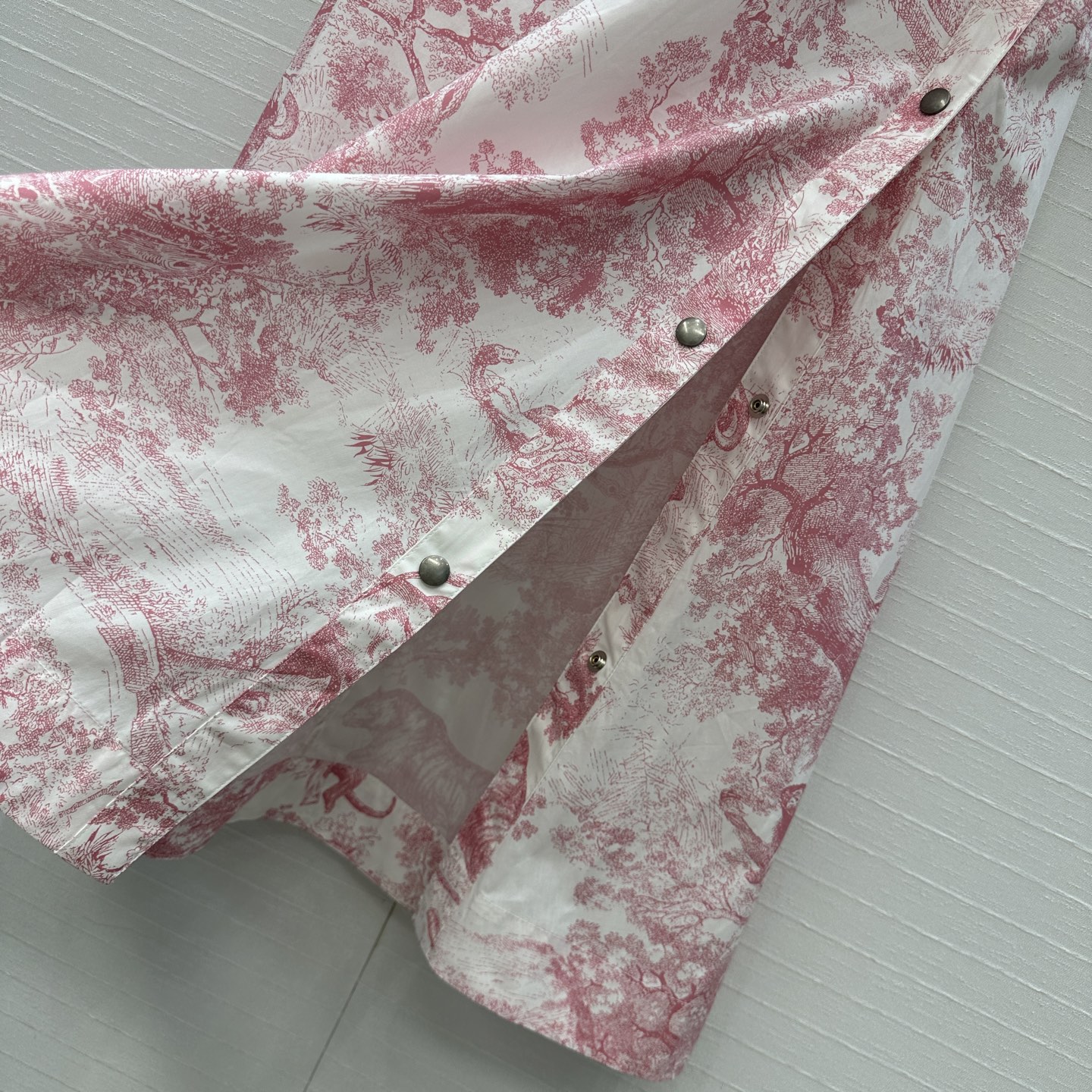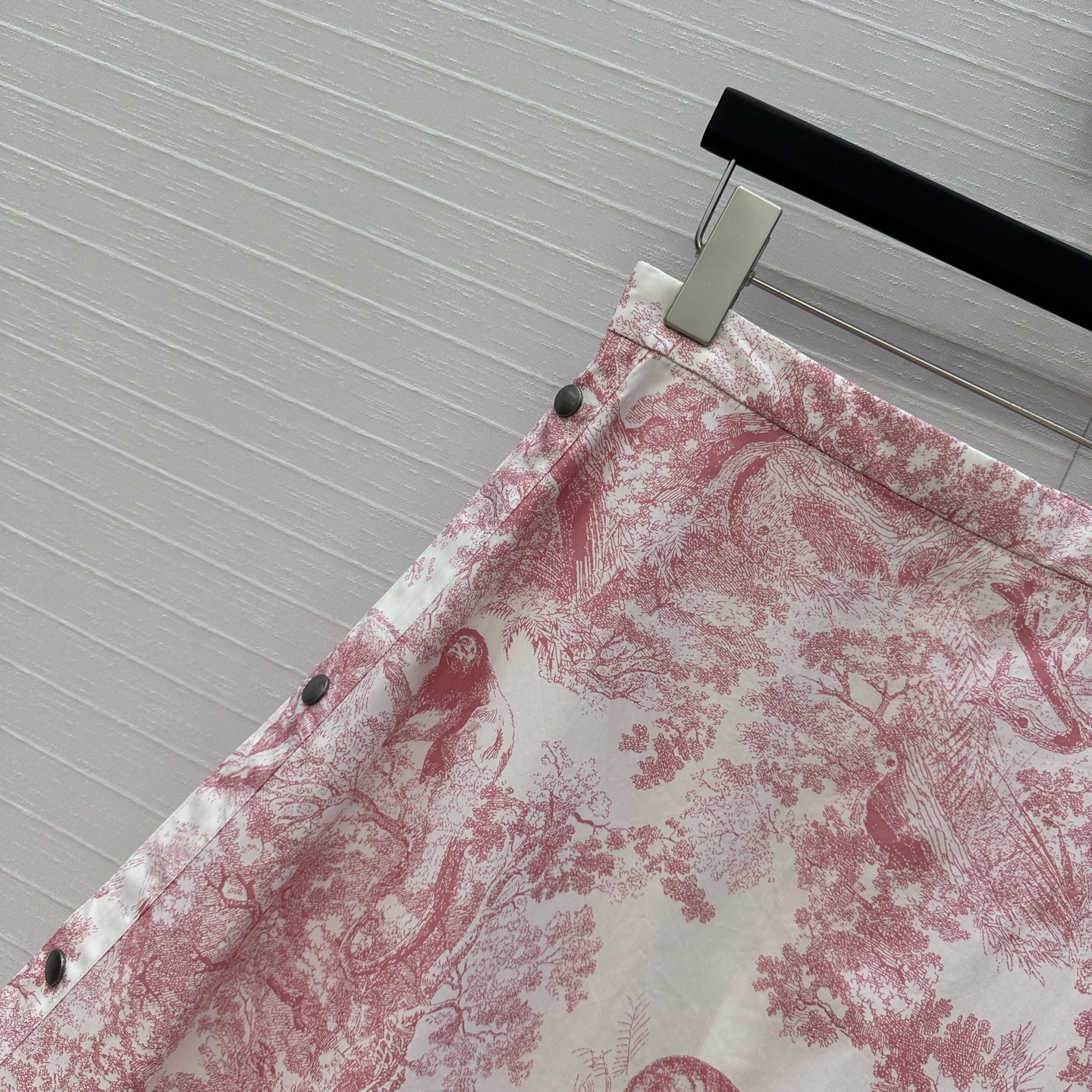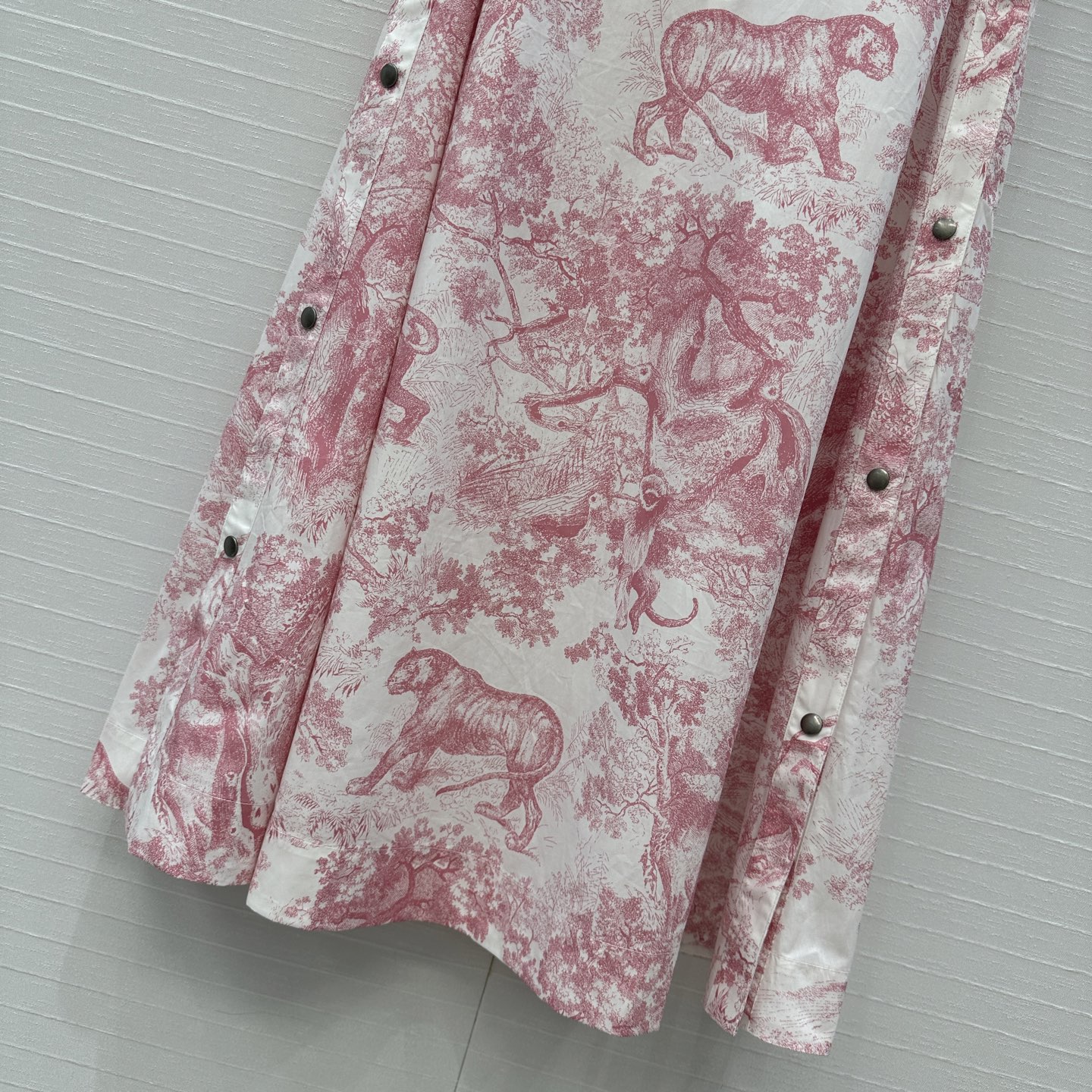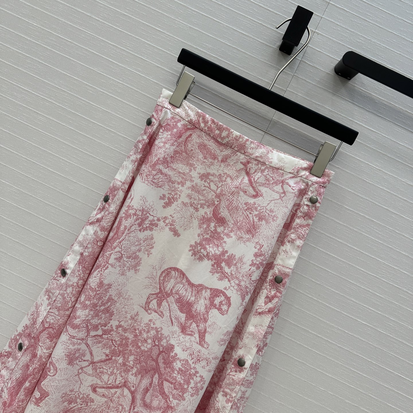 Fit: High-waist A-line with front button slit