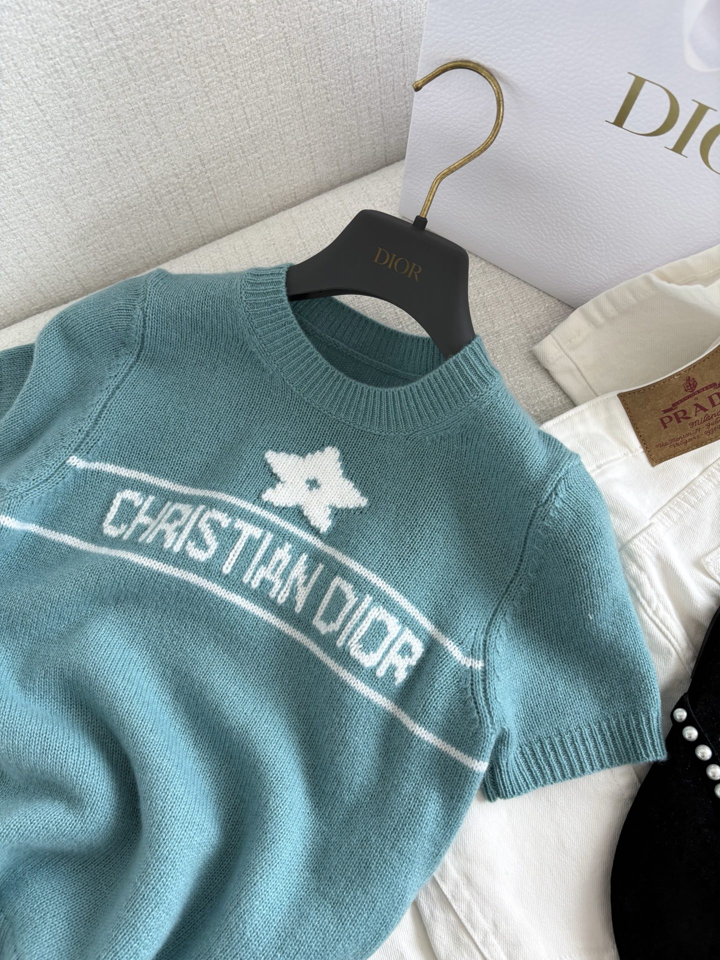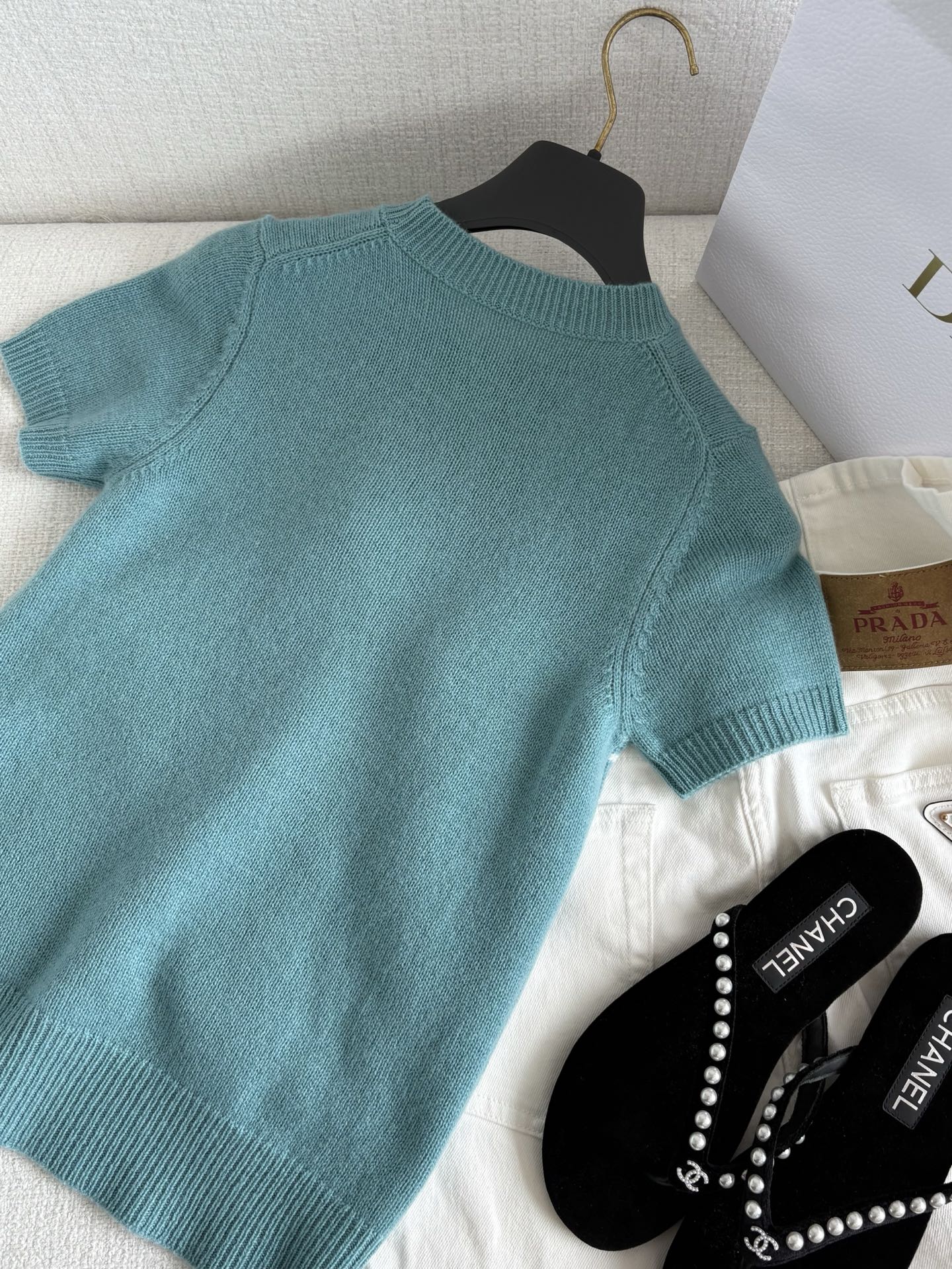 Size 34: shoulder-to-shoulder width: 31 cm / 12 inches, chest size: 78 cm / 30.5 inches, outside and inside sleeve lengths: 17 and 3.5 cm / 6.5 and 1.5 inches, back and front lengths: 49 and 41 cm / 19.5 and 16 inches