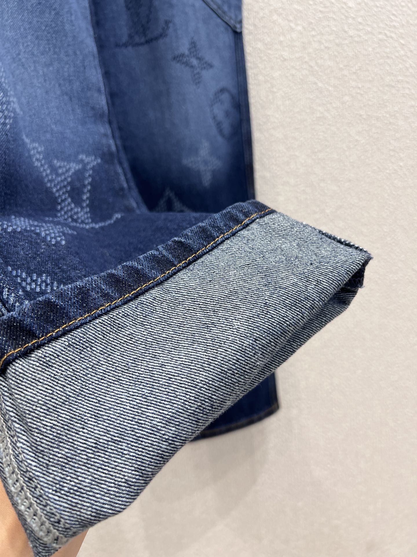 These organic denim workwear pants have an easy relaxed fit and a washed vintage finish. They are adorned with a Monogram Seeds motif in a sophisticated tonal gradient effect. Workwear details include side pockets and a hammer loop, while a leather Damier jacqueron at the back is signed with an embossed LV. A matching overshirt makes a graphic set.