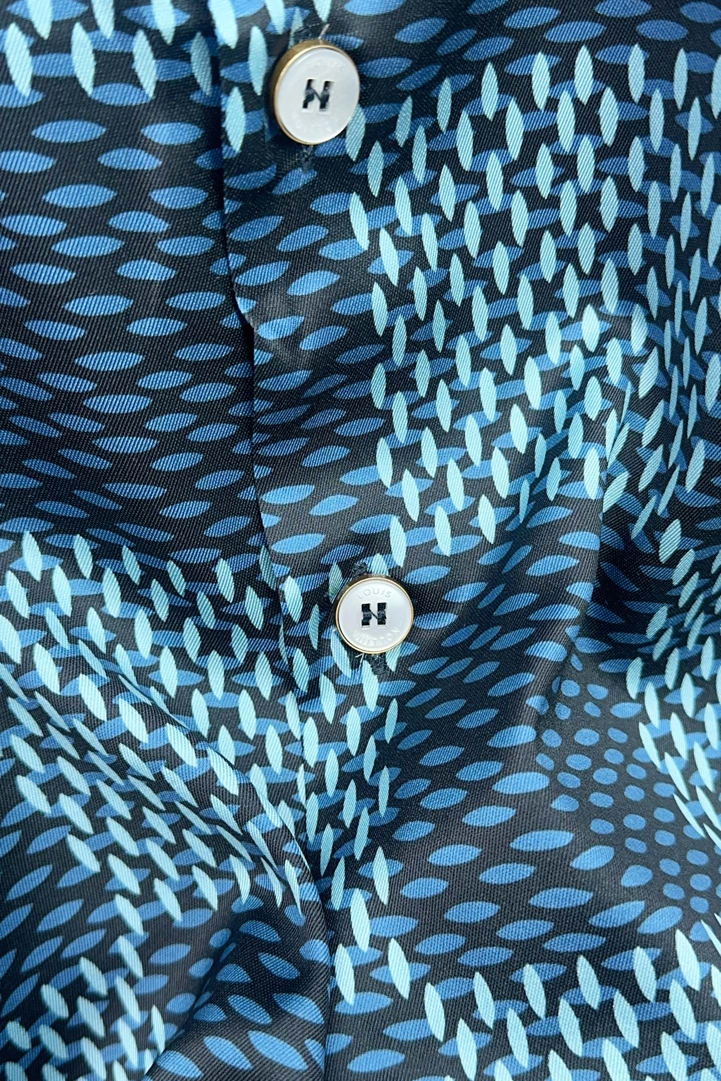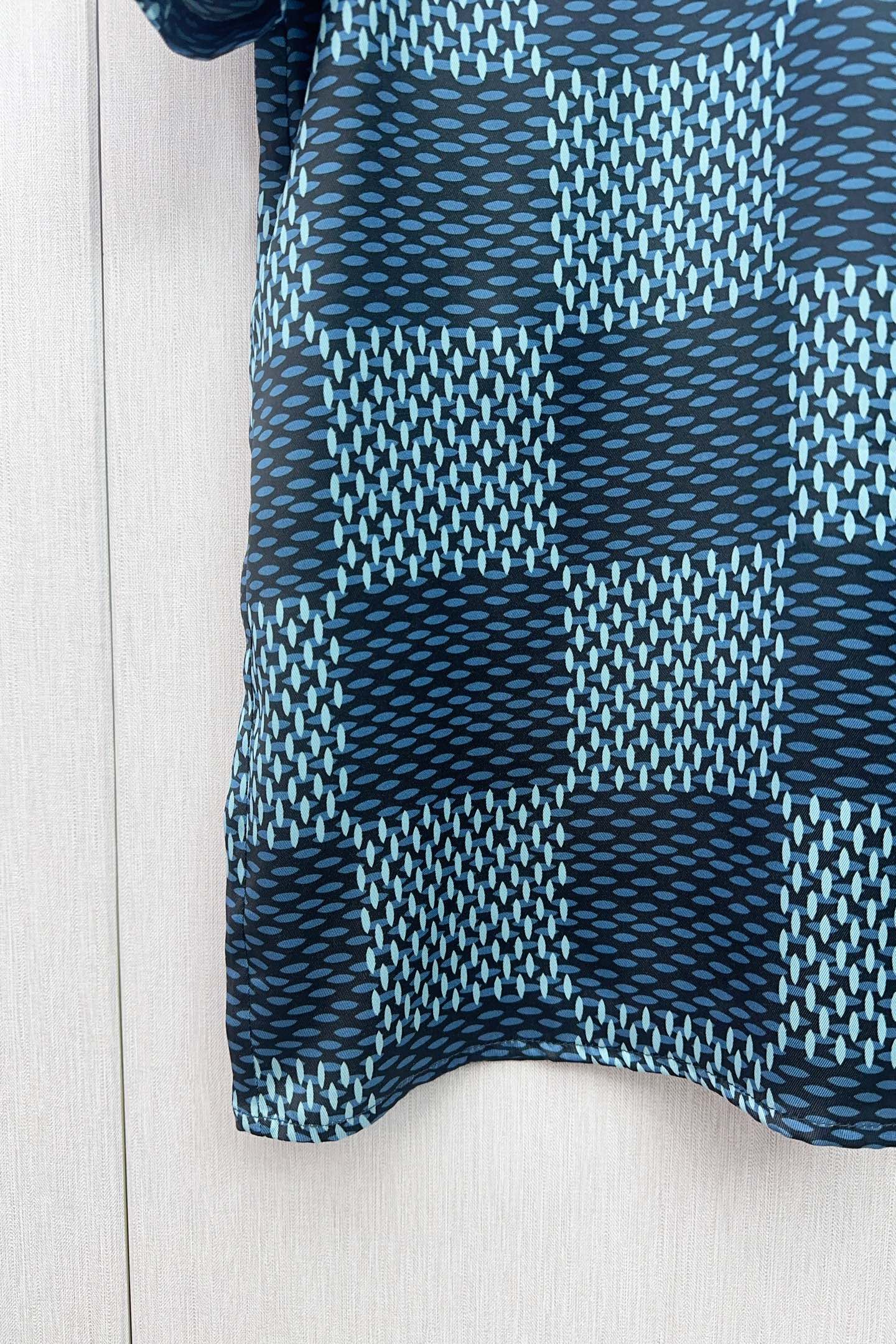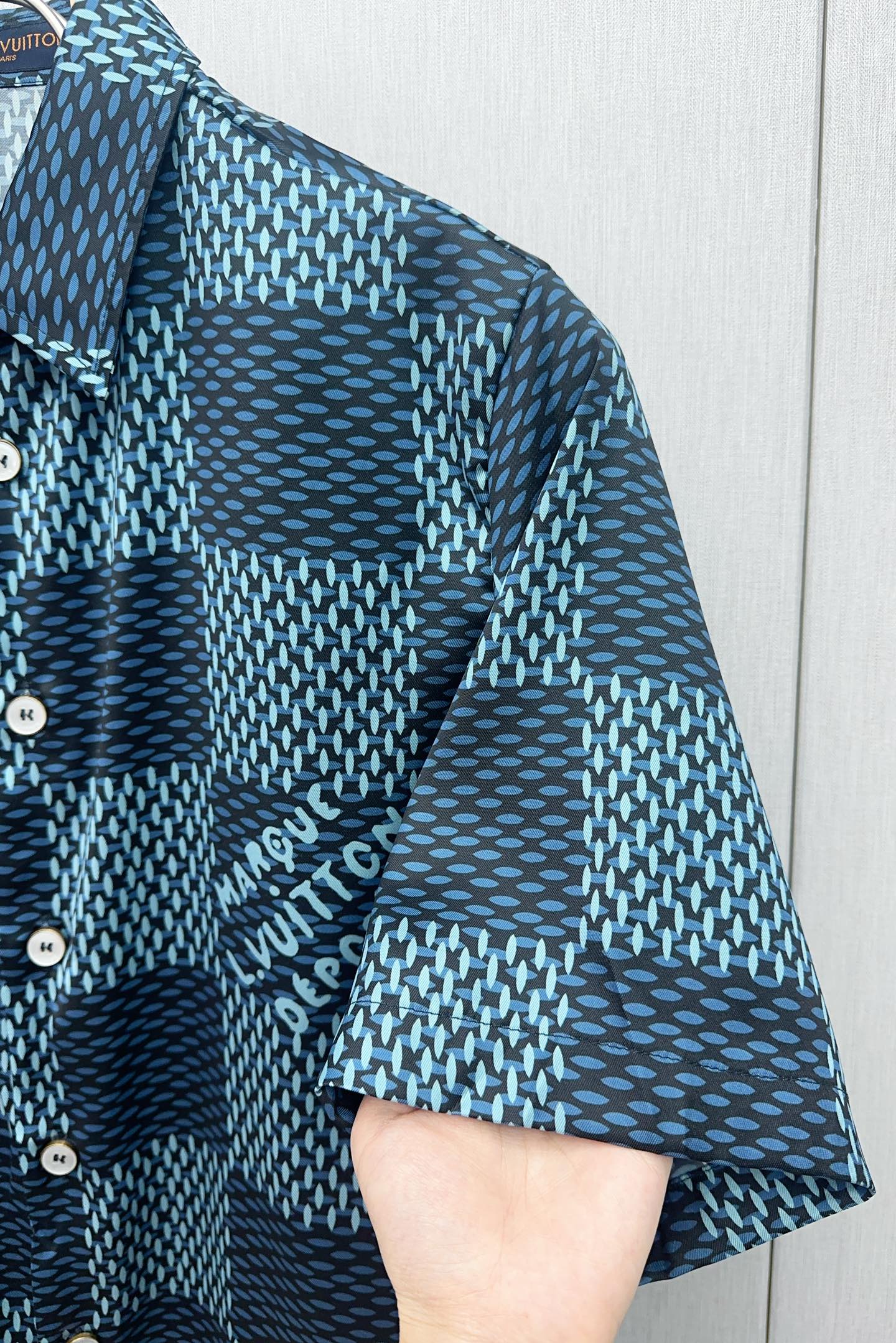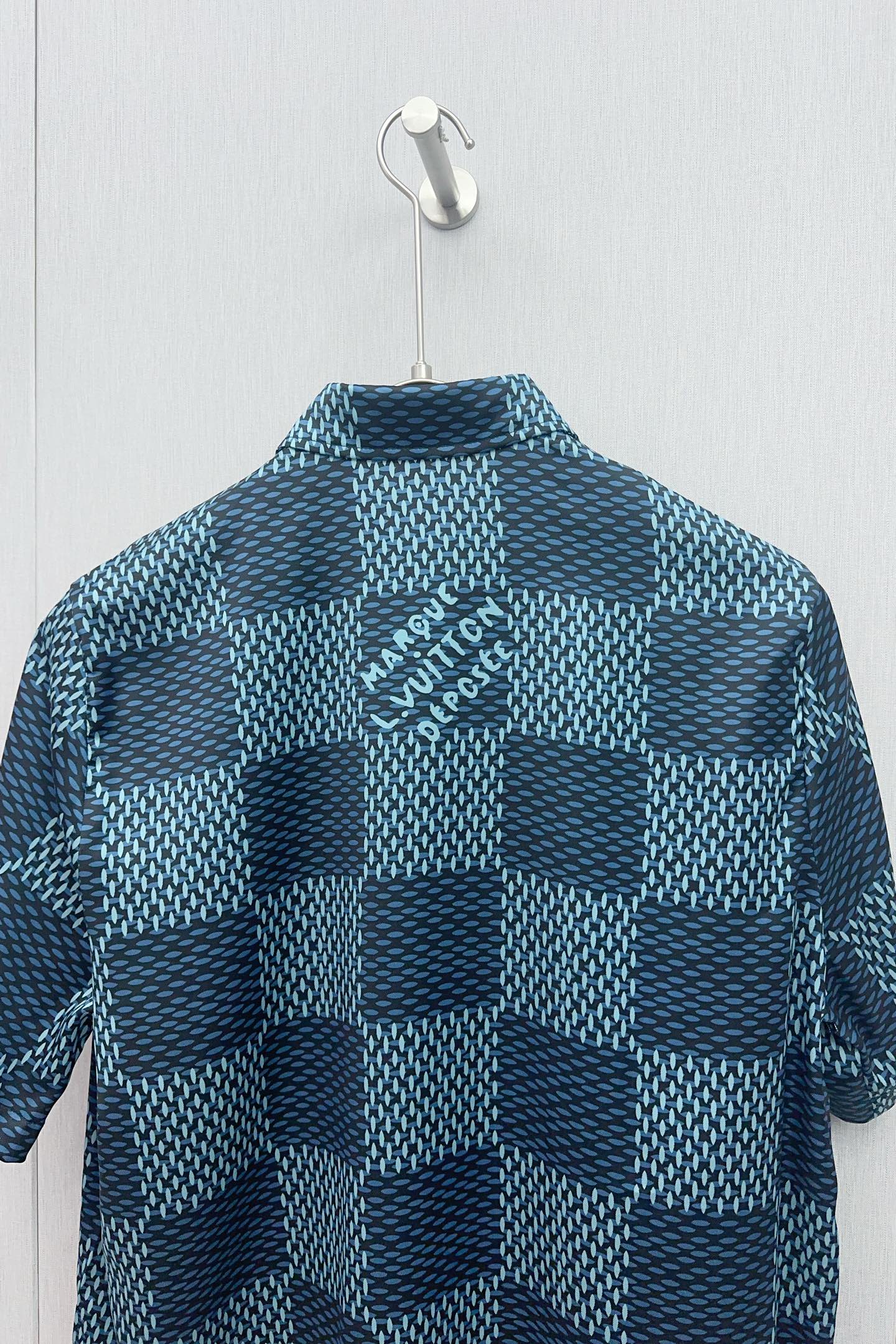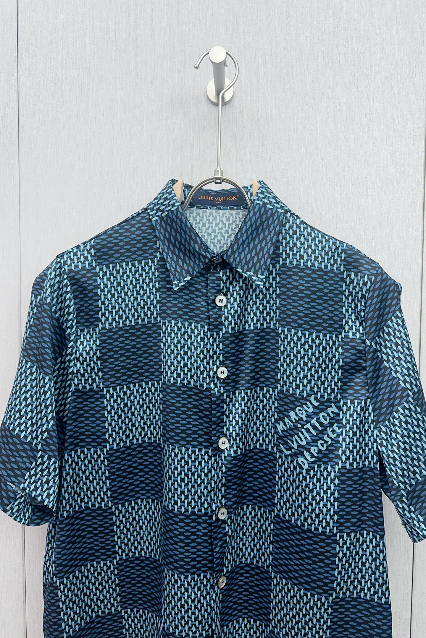 Crafted from luxurious silk twill, this fluid short-sleeved shirt stands out with a graphic allover Damier print incorporating Marque L.Vuitton Déposée signatures. The lustrous fabric in elegant blue tones is easy to mix and match with plain items for effortlessly chic summer looks, while matching shorts make a sophisticated day-to-evening set.