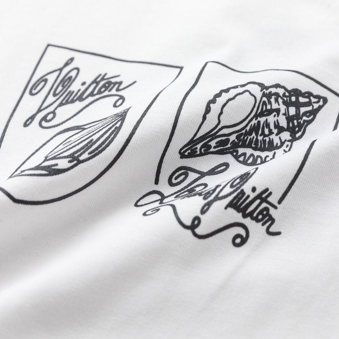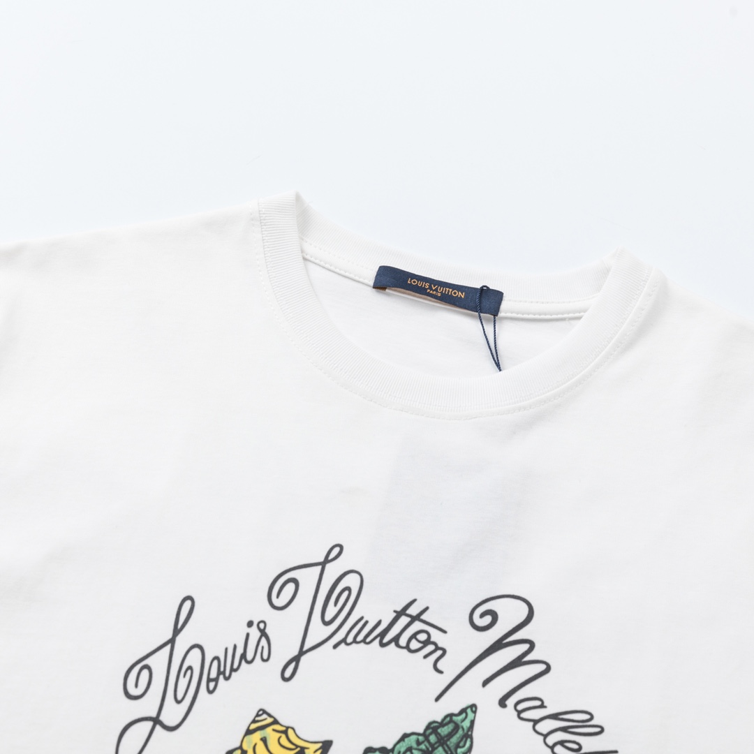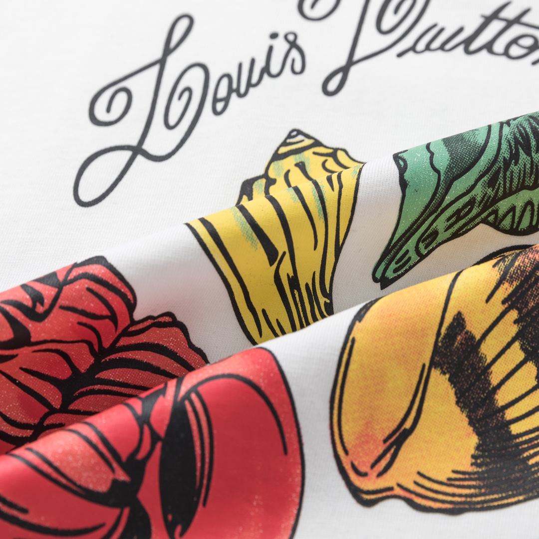 Lv-shell Pattern Print Short sleeve combed cotton plain fabric lightweight and breathable chest embellish with watercolor pen shell print summer choice item size SML