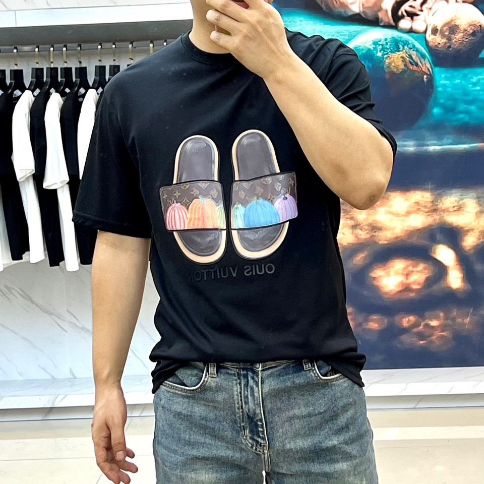 LV 2024 spring/summer new series of single products on the line, a very fashionable avant-garde men and women with the same short-sleeved T-shirt, eye-catching logo pattern color block printing modification! Different from the past, declare the design concept of brand heritage for many years! Its eye-catching degree is no less than any classic style, and the stylish and luxurious sense is perfectly presented in front of the world! Imported 100% cotton material, selected high-quality cotton fabric, soft touch and delicate, the physical hand is absolutely beyond your imagination, intimate comfort and breathable, even sweaty will not have greasy body and muggy feeling at all, will sweat hygroscopic play to the extreme! 48-56 (Model 173,143 kg upper body size 50)