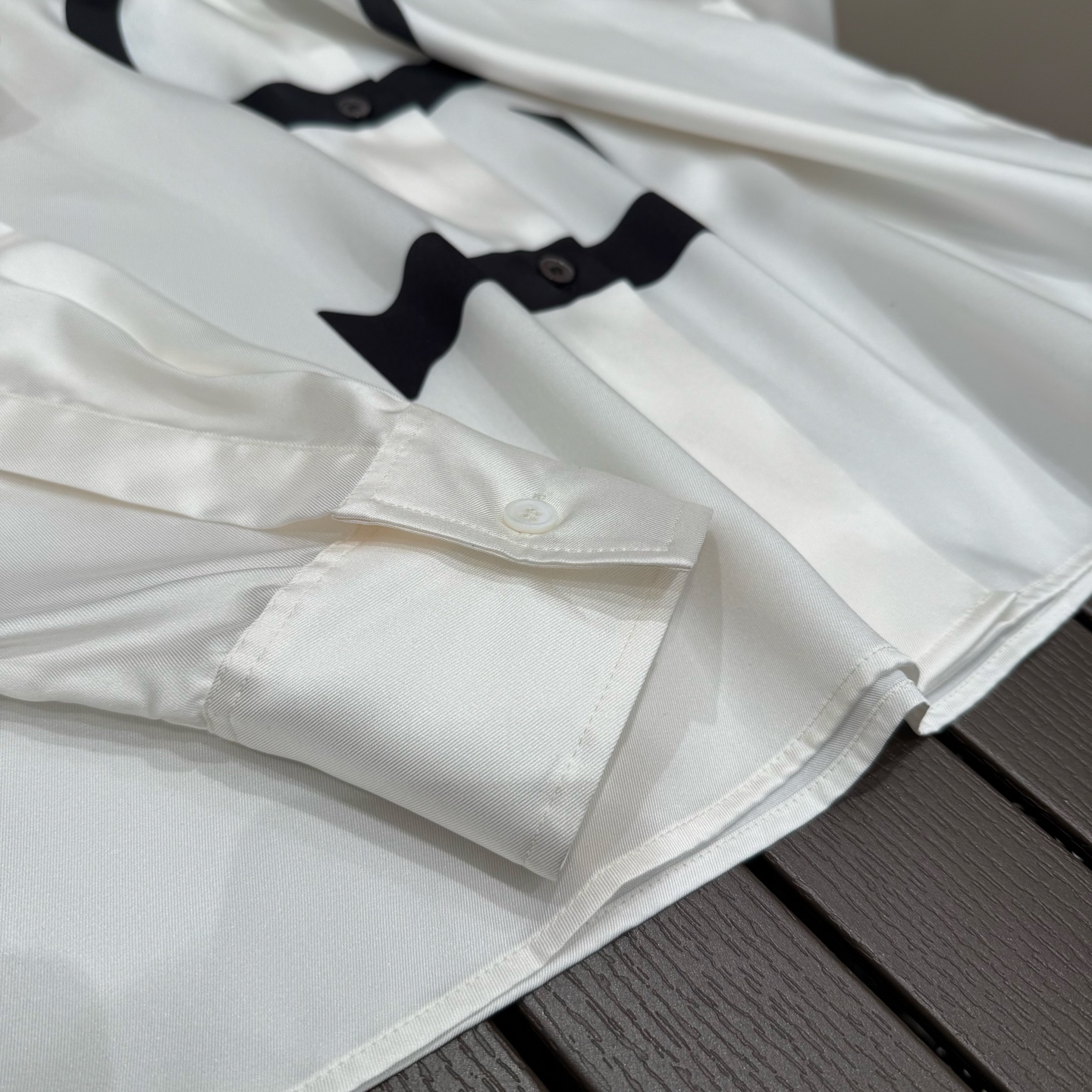 This newly released Loewe-inspired silk satin shirt is the definition of effortless chic. Featuring a cool, silky, and matte texture, the loose fit paired with the classic logo print exudes both fashion and a laid-back vibe.