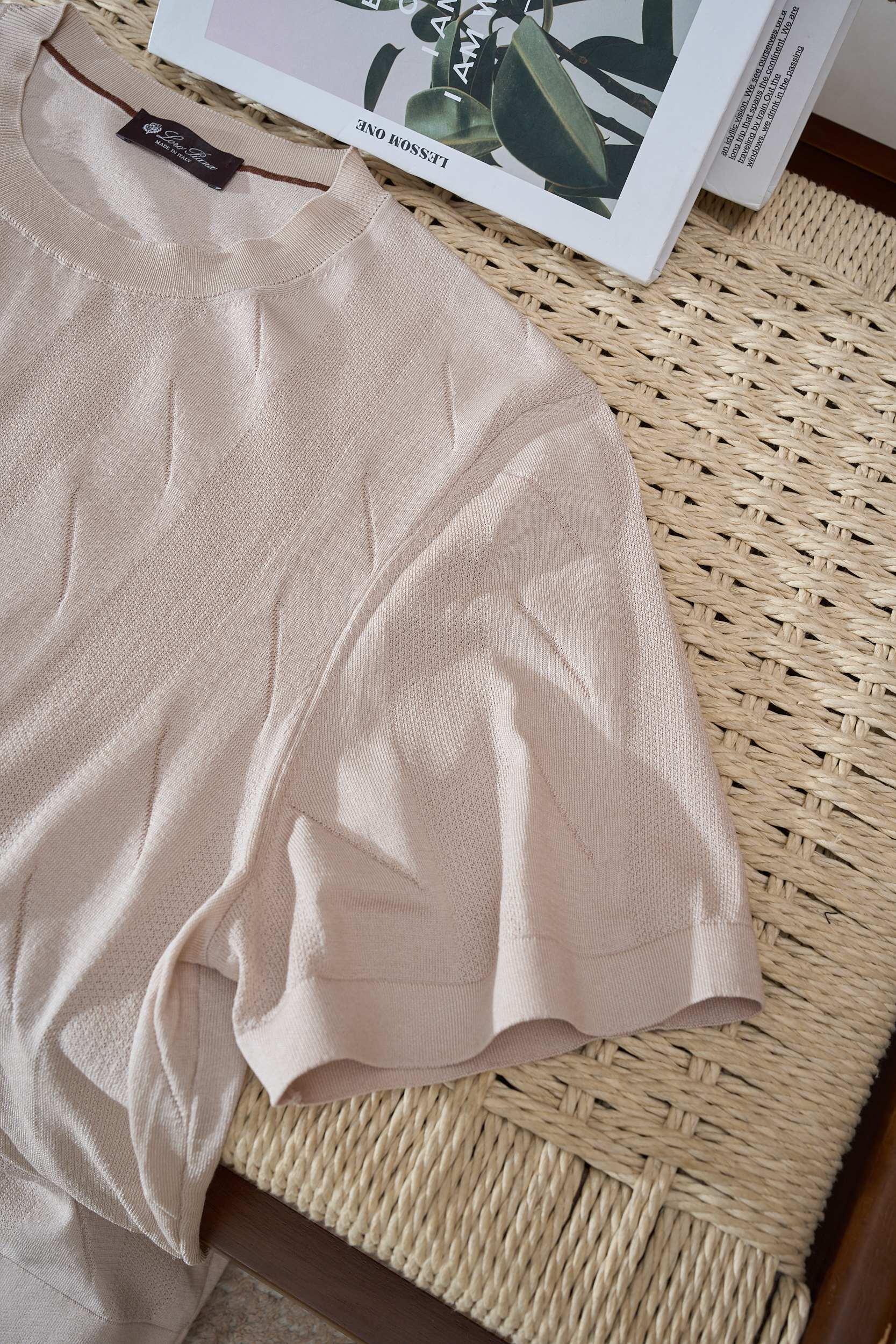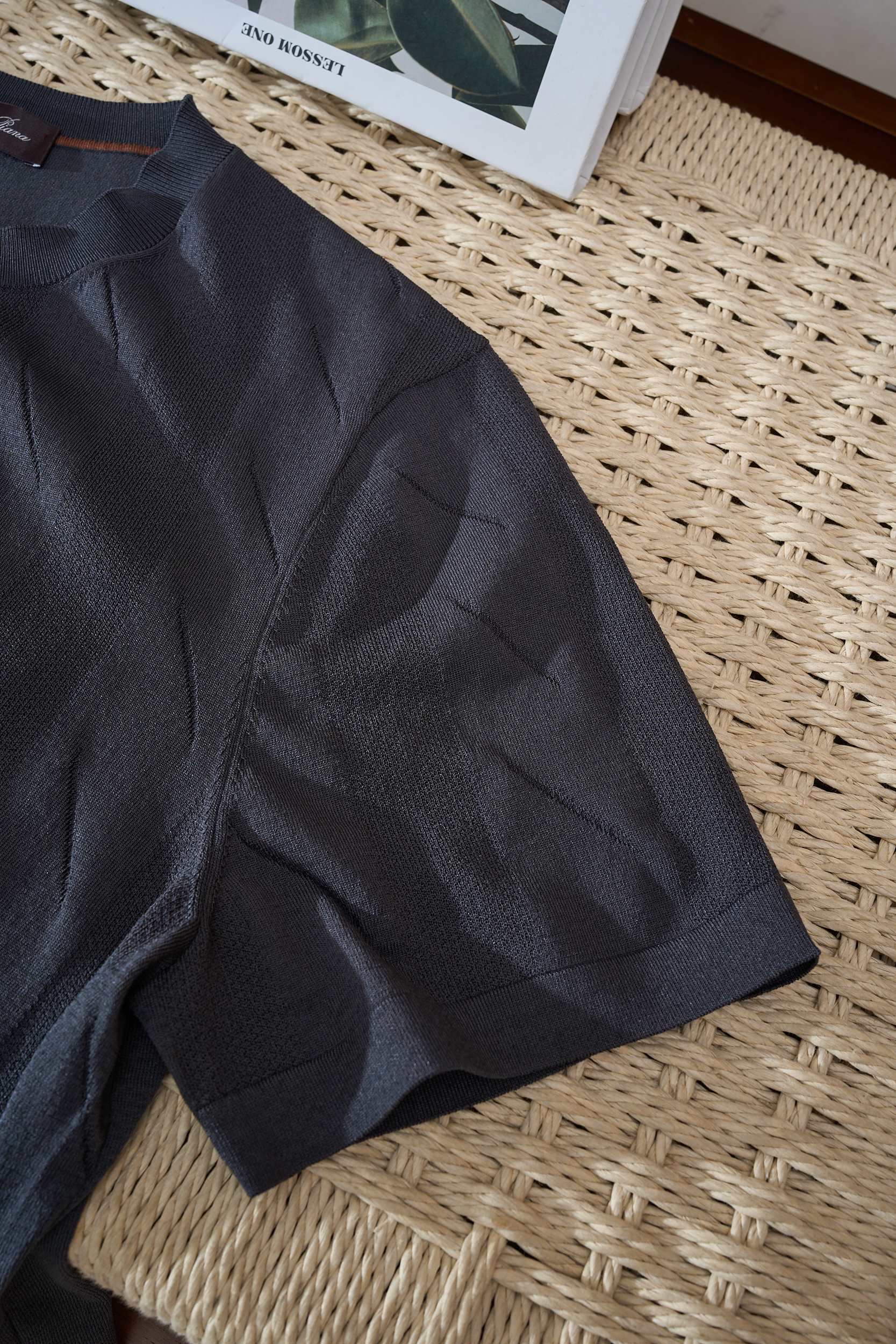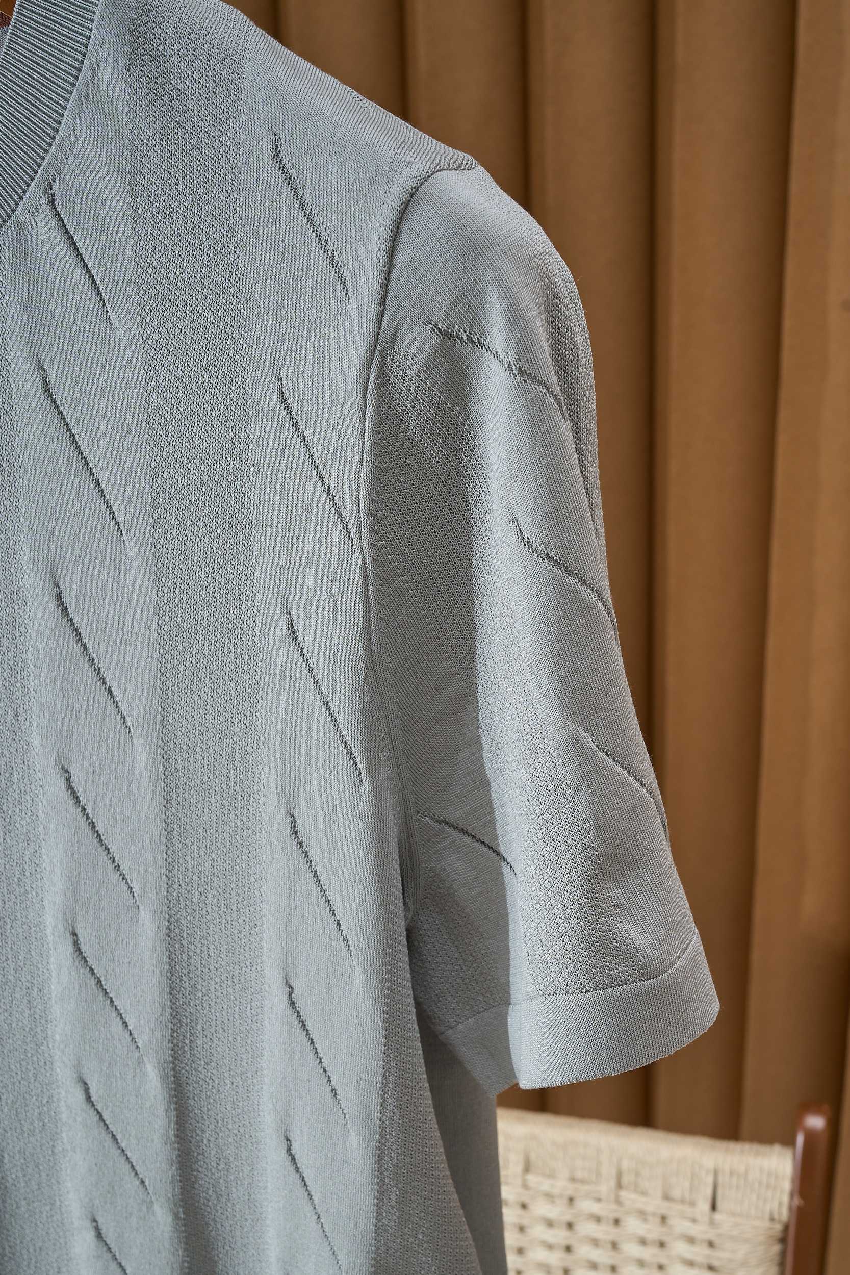Crafted with premium silk-blend yarn, this crew neck knit tee redefines summer sophistication. Using fine jacquard weaving, it subtly blends geometric or abstract patterns into the fabric — not printed, but woven for durability, elegance, and depth.
