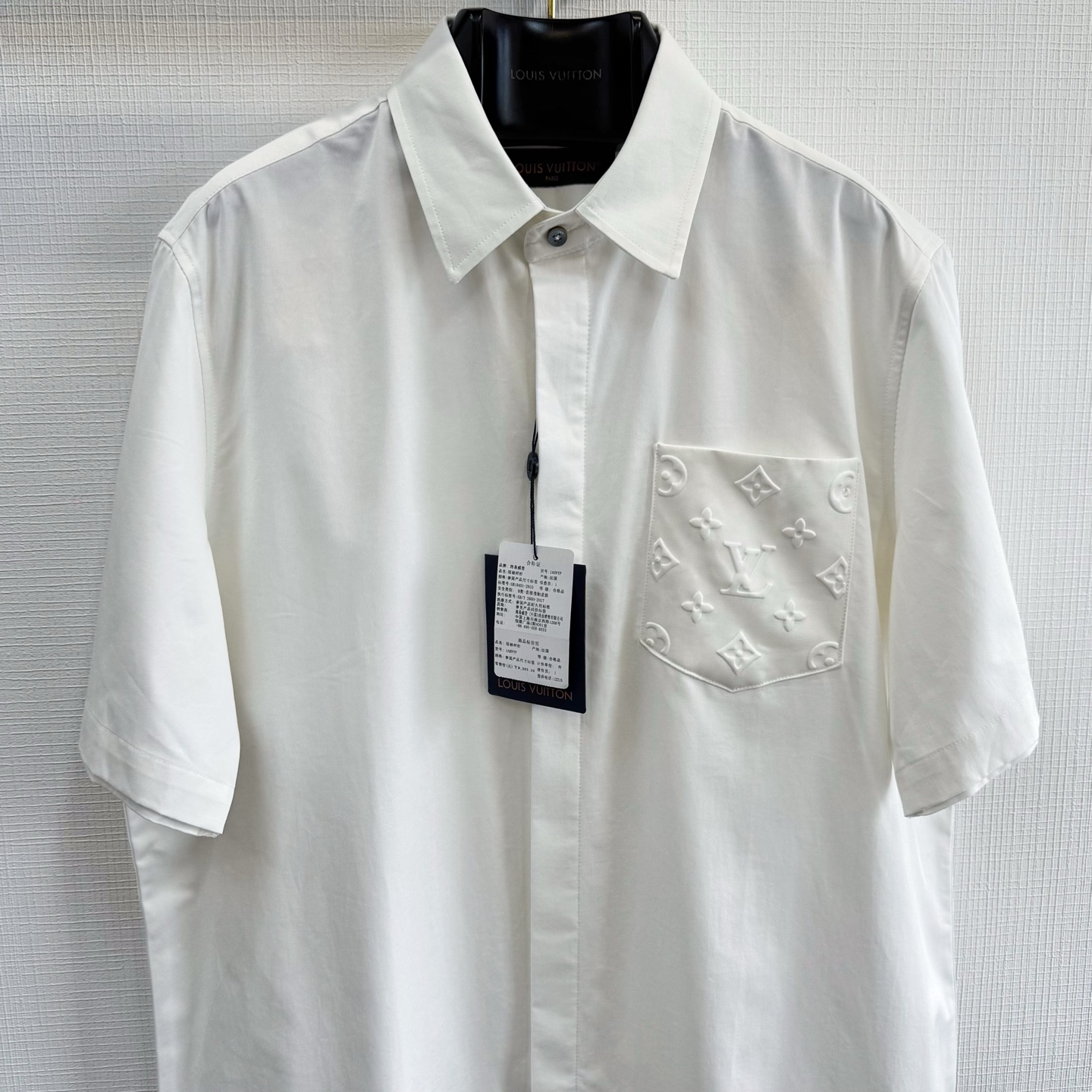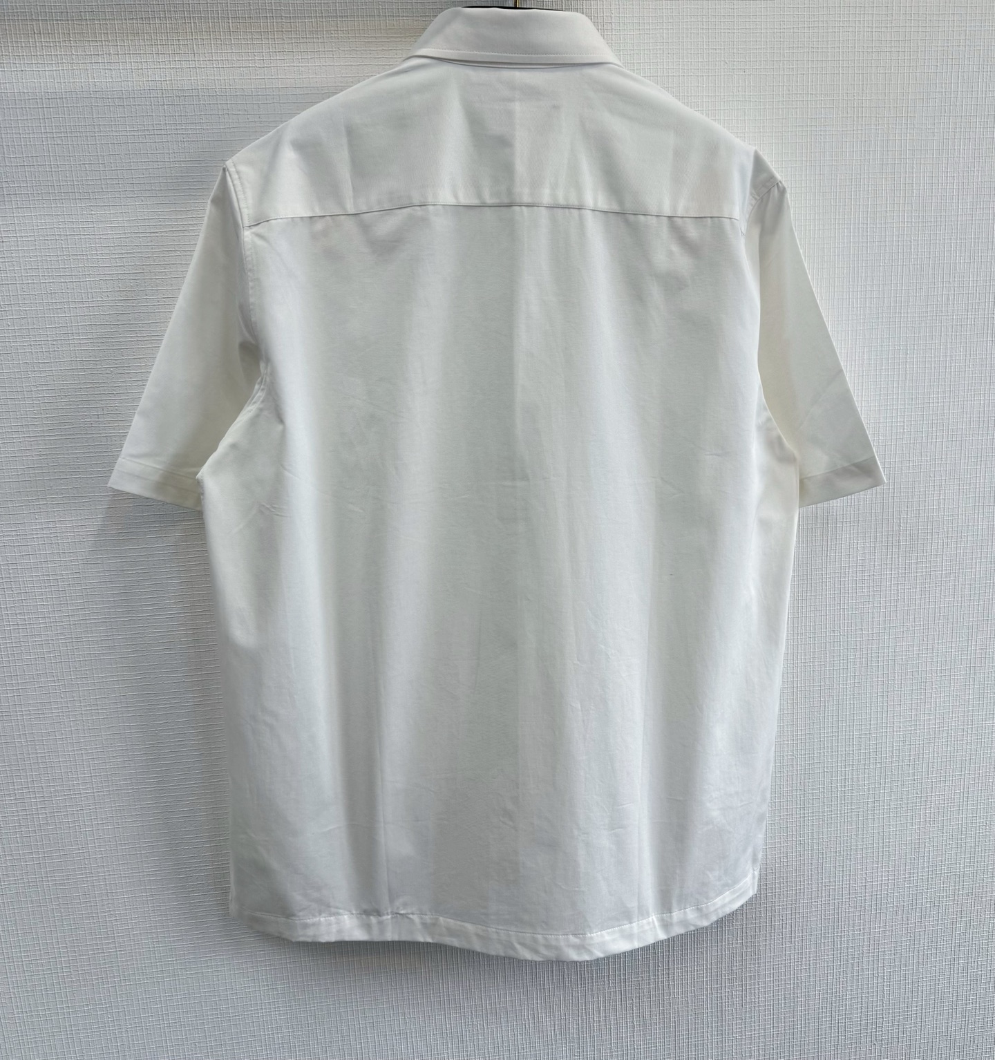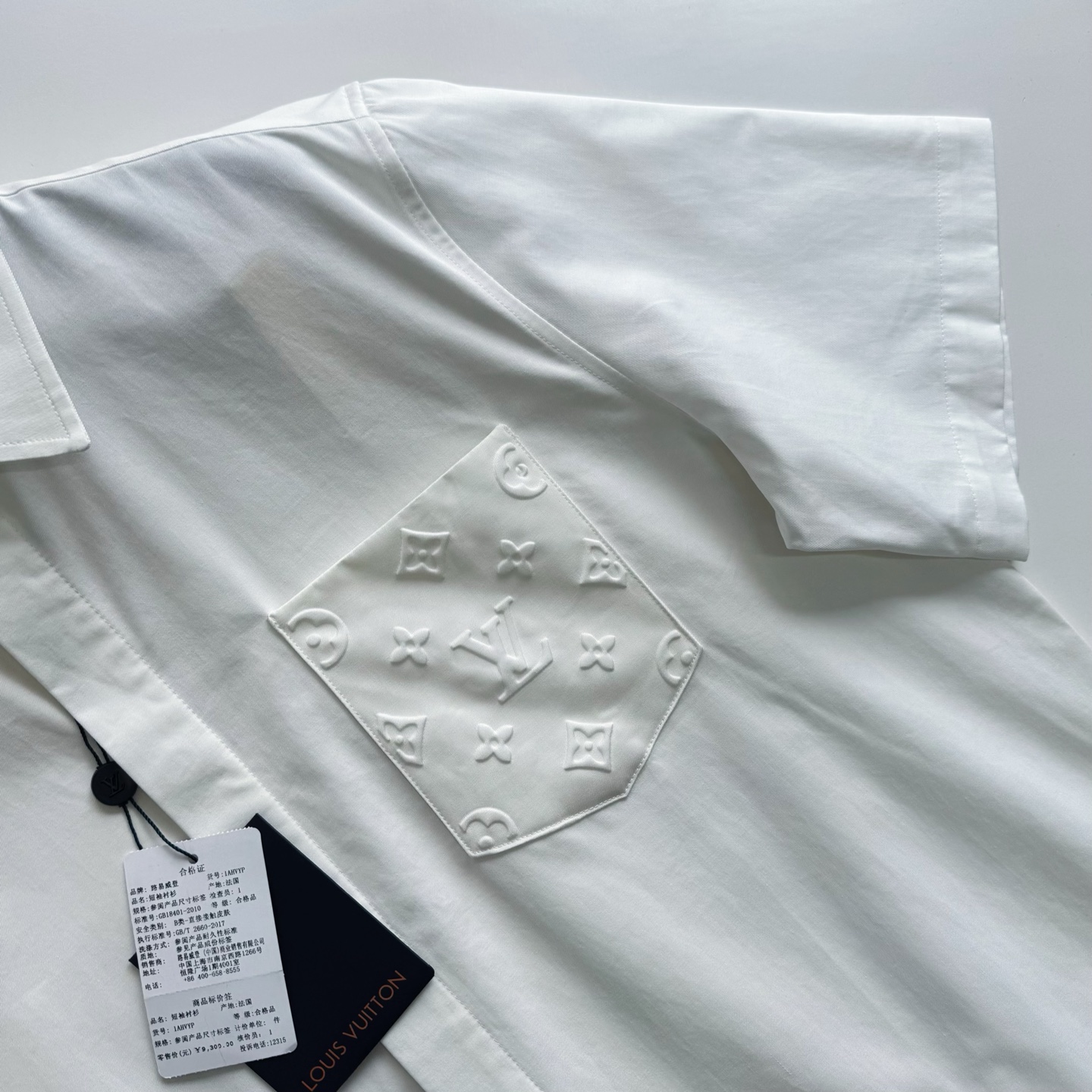 This white short-sleeved shirt adds a touch of style to summer looks. Crafted from smooth cotton poplin, it features a concealed placket for a clean, minimalist finish. A chest patch pocket is embellished with an embossed Monogram motif, lending an elegant and iconic accent to this timeless design.