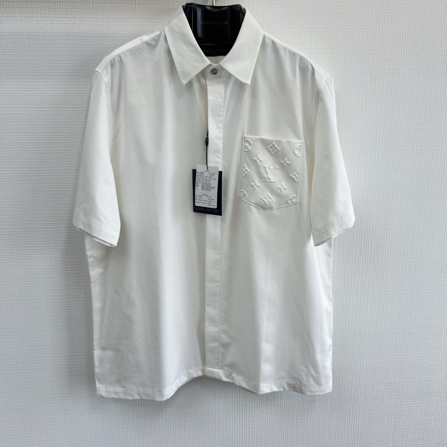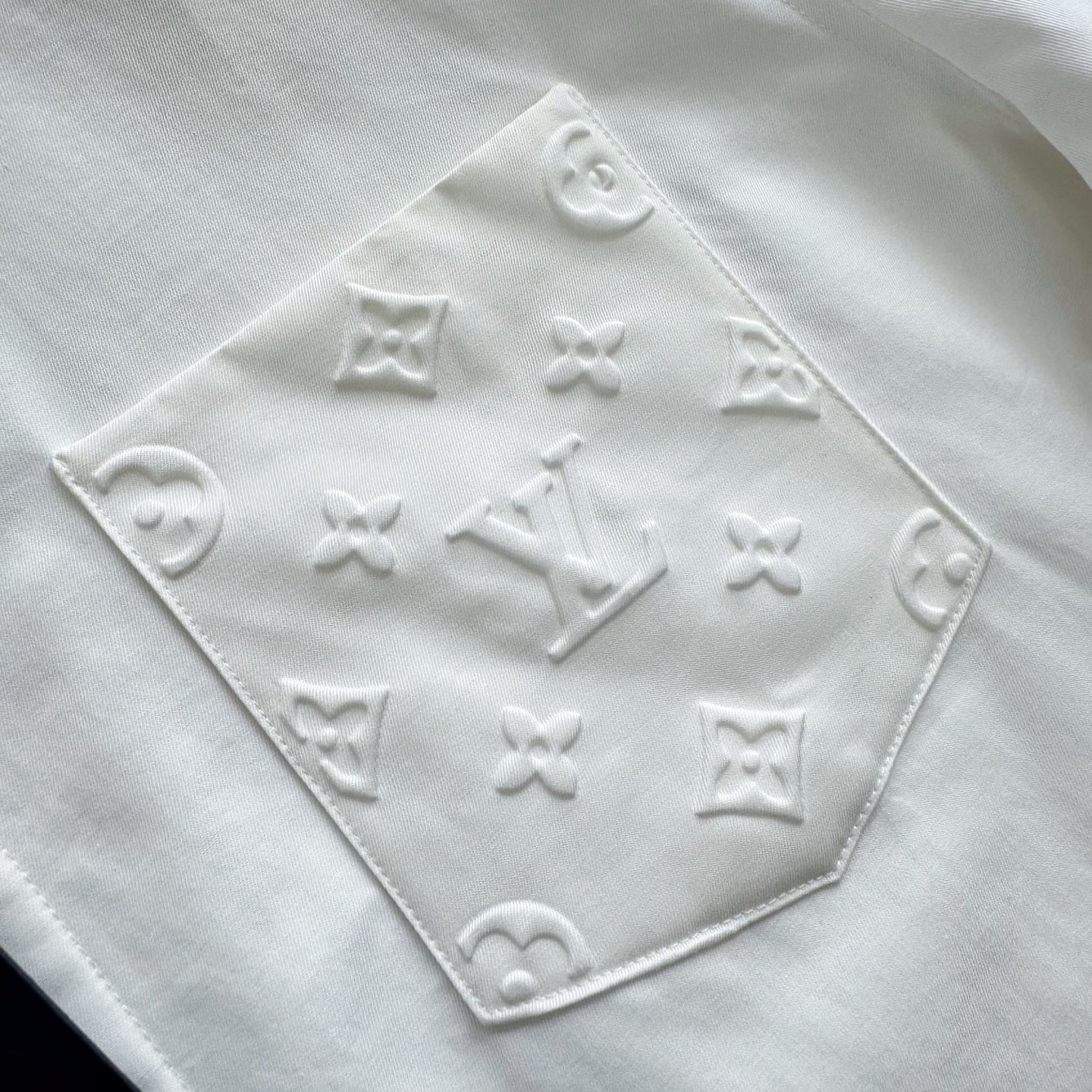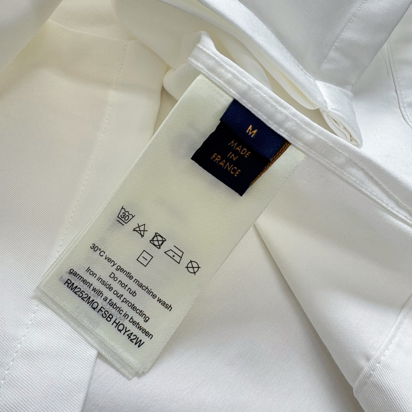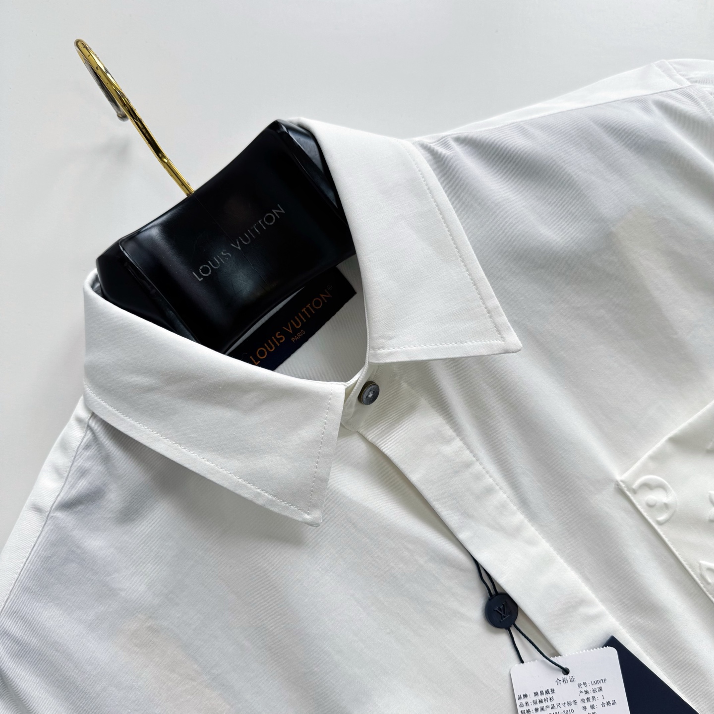 This white short-sleeved shirt adds a touch of style to summer looks. Crafted from smooth cotton poplin, it features a concealed placket for a clean, minimalist finish. A chest patch pocket is embellished with an embossed Monogram motif, lending an elegant and iconic accent to this timeless design.
