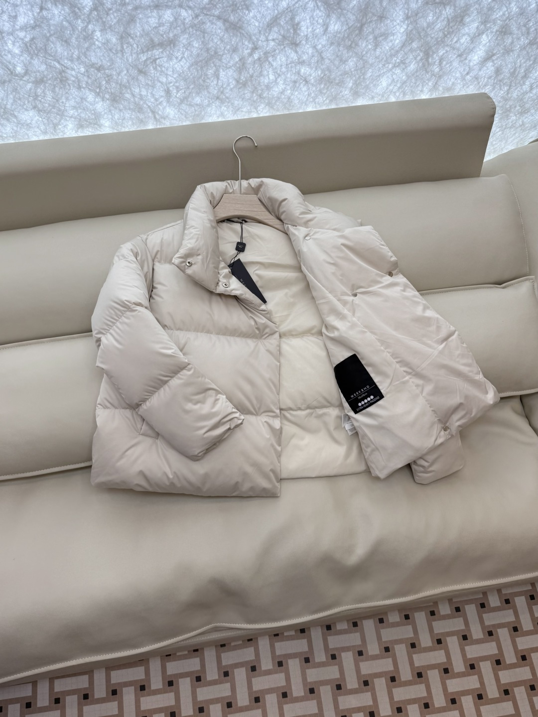 A stylish and cozy short down jacket, perfect for layering while keeping a sleek, modern silhouette.