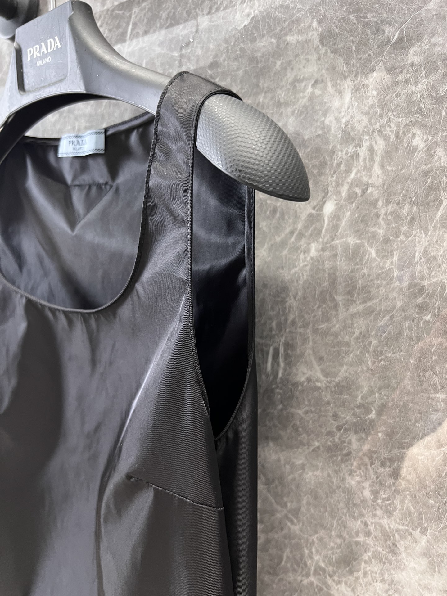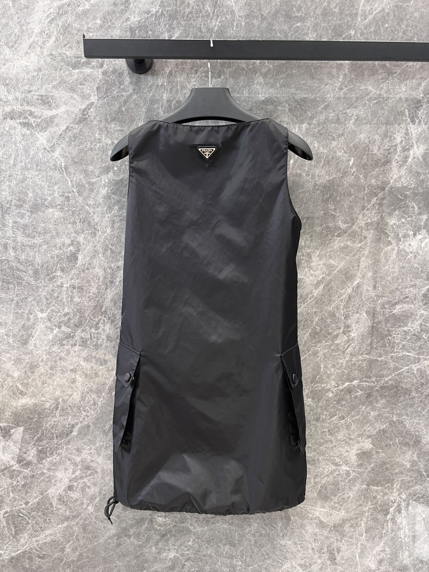 Solid Color Sleeveless Dress with Inverted Triangle Logo丨⚠Exclusive YB Development! Premium Edition! Made from custom lightweight nylon fabric with a delicate texture, offering both comfort and an elegant drape. The sophisticated cool-toned black is highly versatile! Featuring custom logo hardware and exquisite craftsmanship inside and out. Perfect for wearing on its own or layering with T-shirts and shirts!