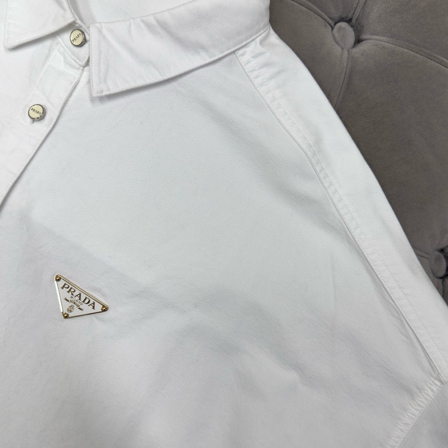 Prada letters white shirt, shirt is almost all year round will use the single product, simple and good wear can not be wrong. Classic but not out of date, the oil like versatile single product, walk in the forefront of fashion senior commuter shirts, with fall and winter all kinds of blazers, the collar exposed outside, fried chicken fashion.