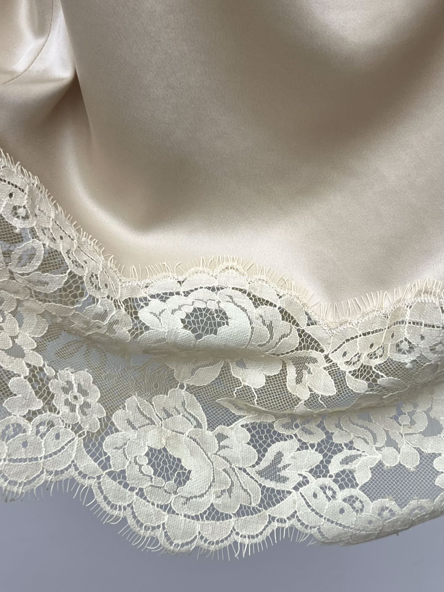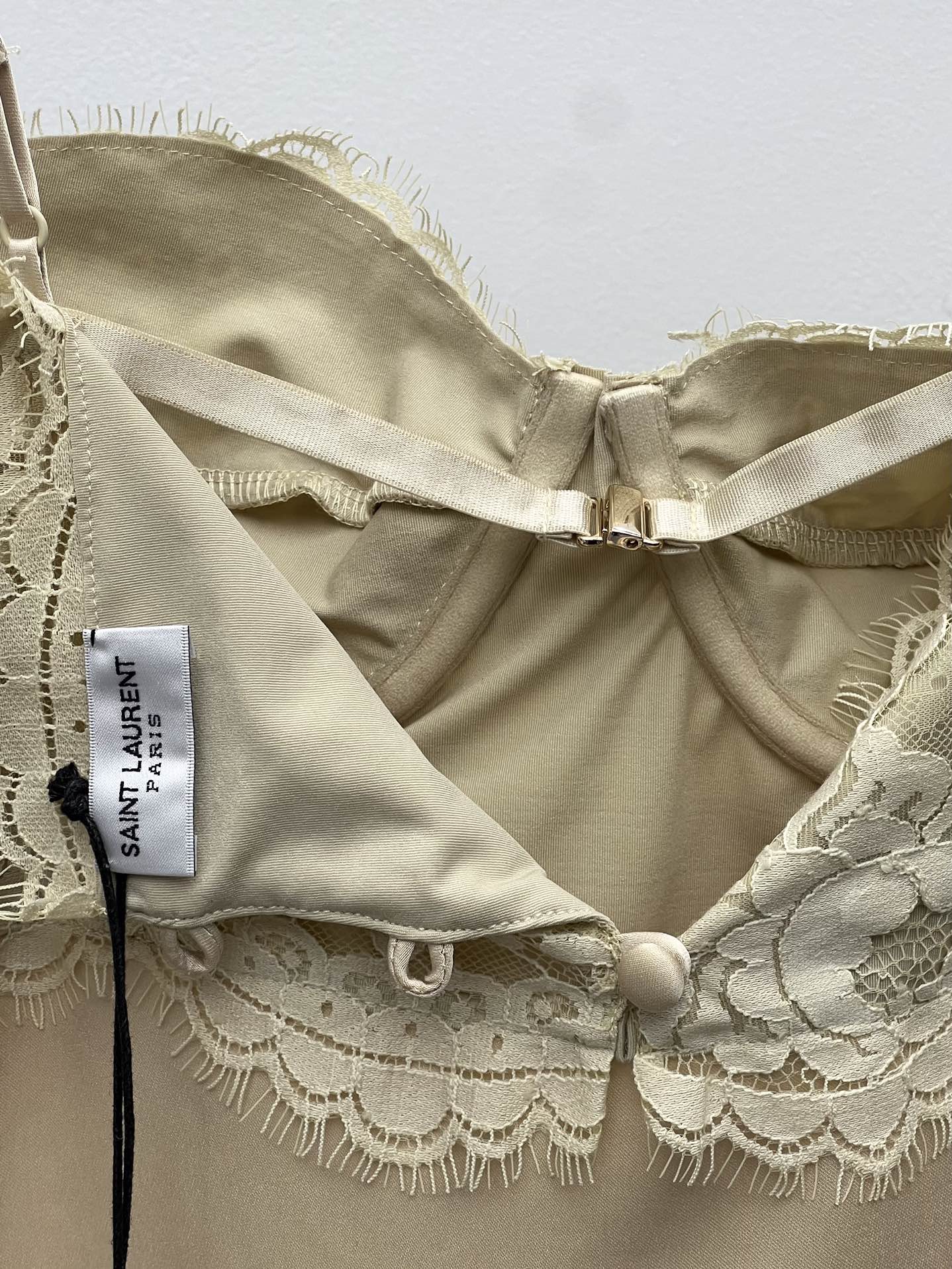 Crafted from acetate crepe satin with delicate lace paneling,this short straight-cut dress features adjustable shoulder strapsfor a customized fit.Stylish and sexy — perfect for wearing on its own or layered.